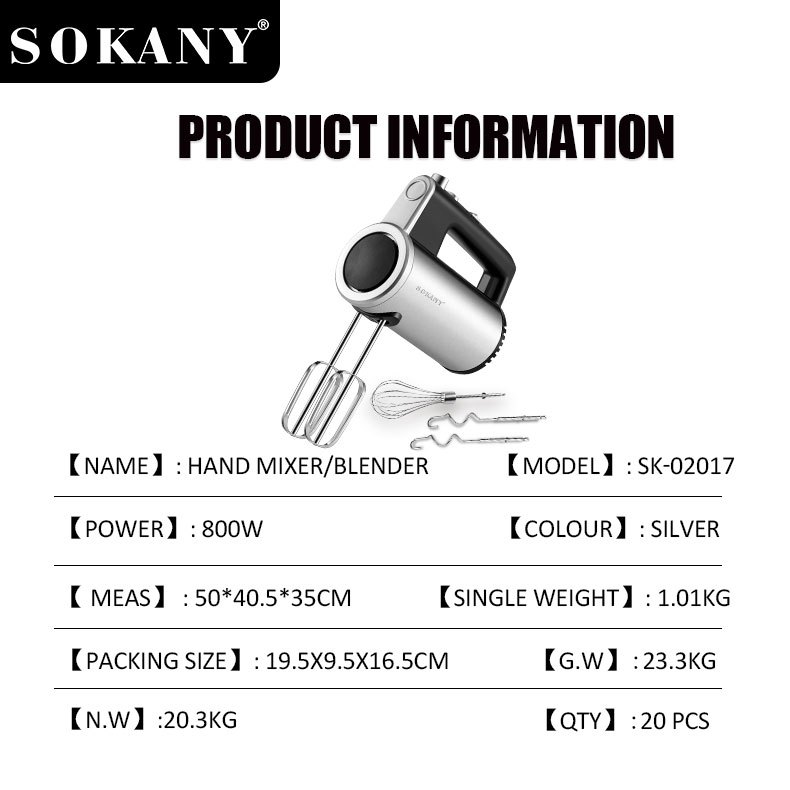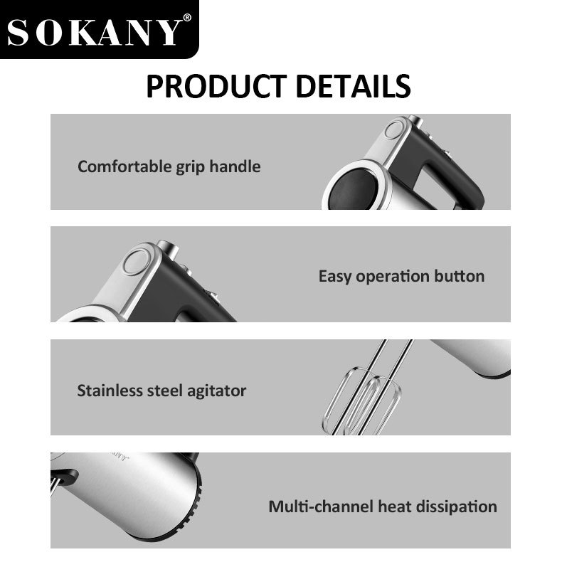SOKANY 3 in1 Electric Hand Mixer Portable 5 Speed Professional Blender Multi-functional Food Mixe Kitchen Handheld Speed Baking Detachable Professional Blender