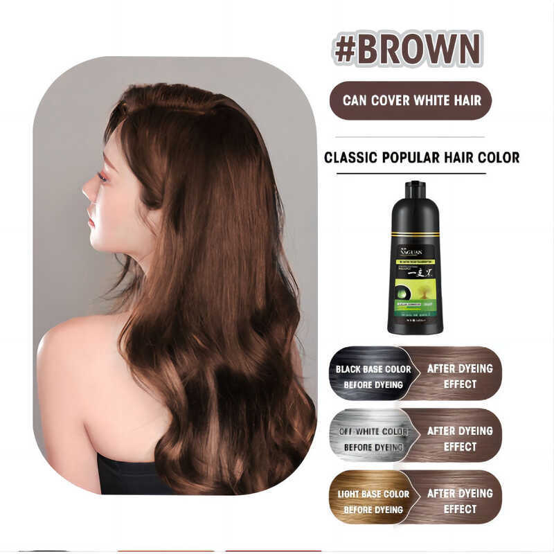 500Ml Herbal Hair Dye Shampoo Dew Shampoo Transforms Hair Into Black Brown Hurtless 9E3