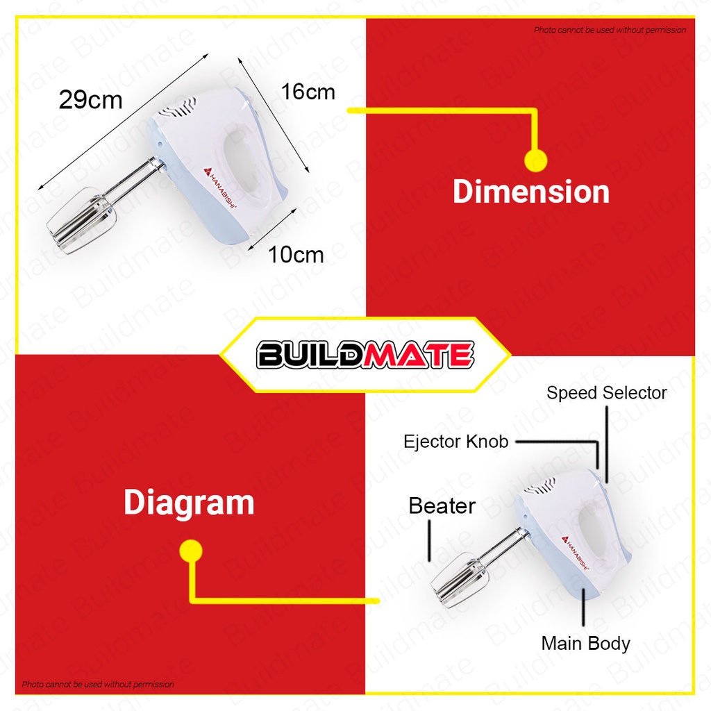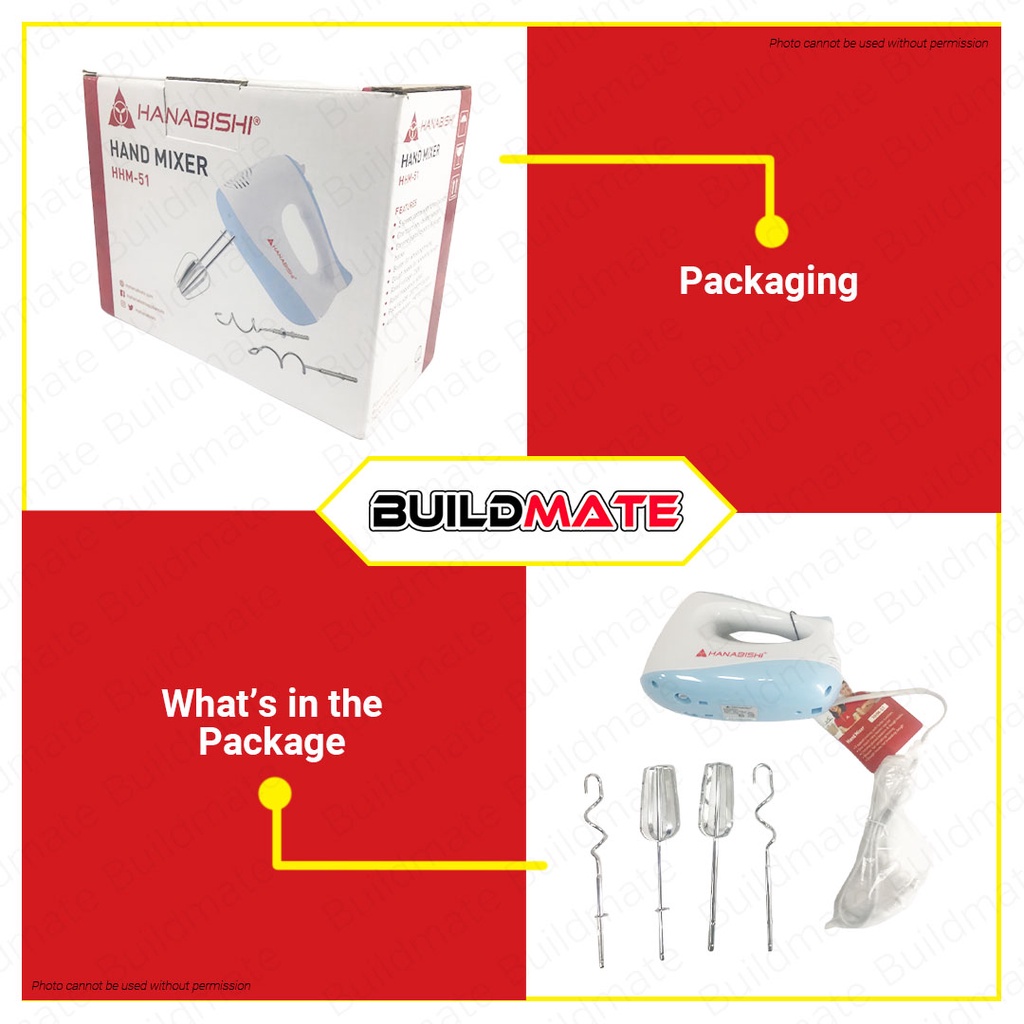 BUILDMATE Hanabishi Handmixer Electric Hand Mixer 150W 5 Speed Handheld Mixer Electric Mixer HHM-51