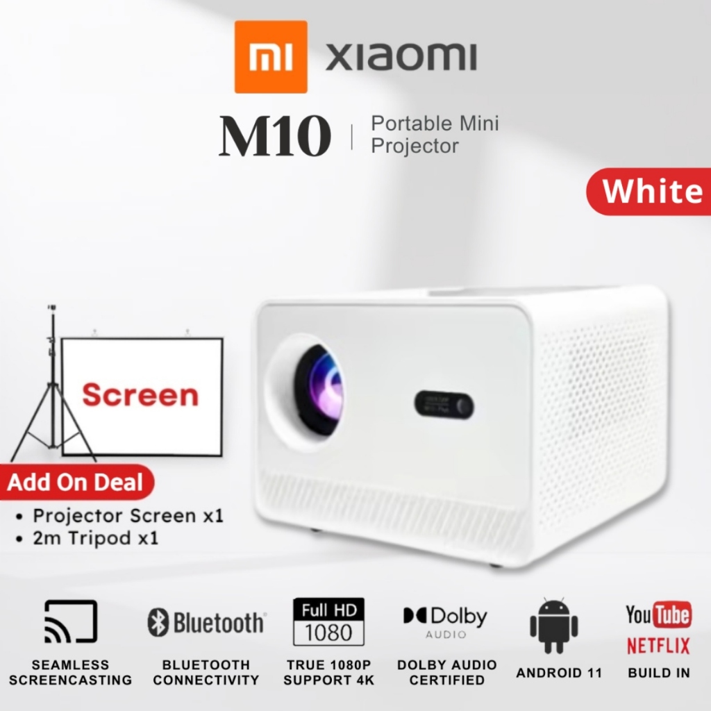 XIAOMI M10 Plus 1080P Smart Projector | WiFi Bluetooth | Portable Android Home Theater & Outdoor Use