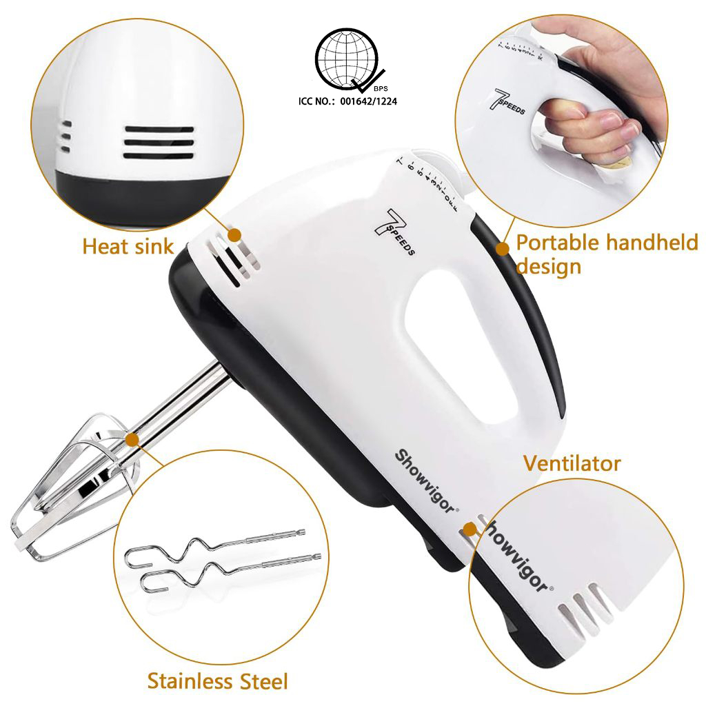 【SayaLiving Store】7-Speed Electric Hand Mixer Stand Mixer-Portable Egg Beater with Stainless Steel Whisks Food for Baking, Cake, Dough & Cookies