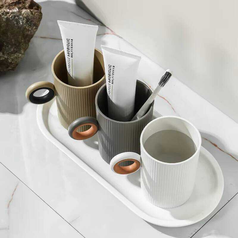 Plastic portable travel toothbrush, mouthwash cup