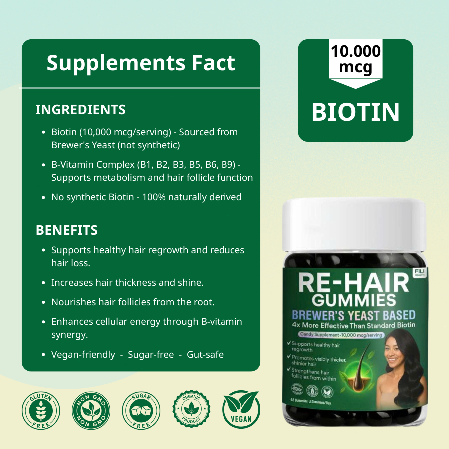Re-Hair Gummies – Natural Hair Growth Supplement, 42 Gummies