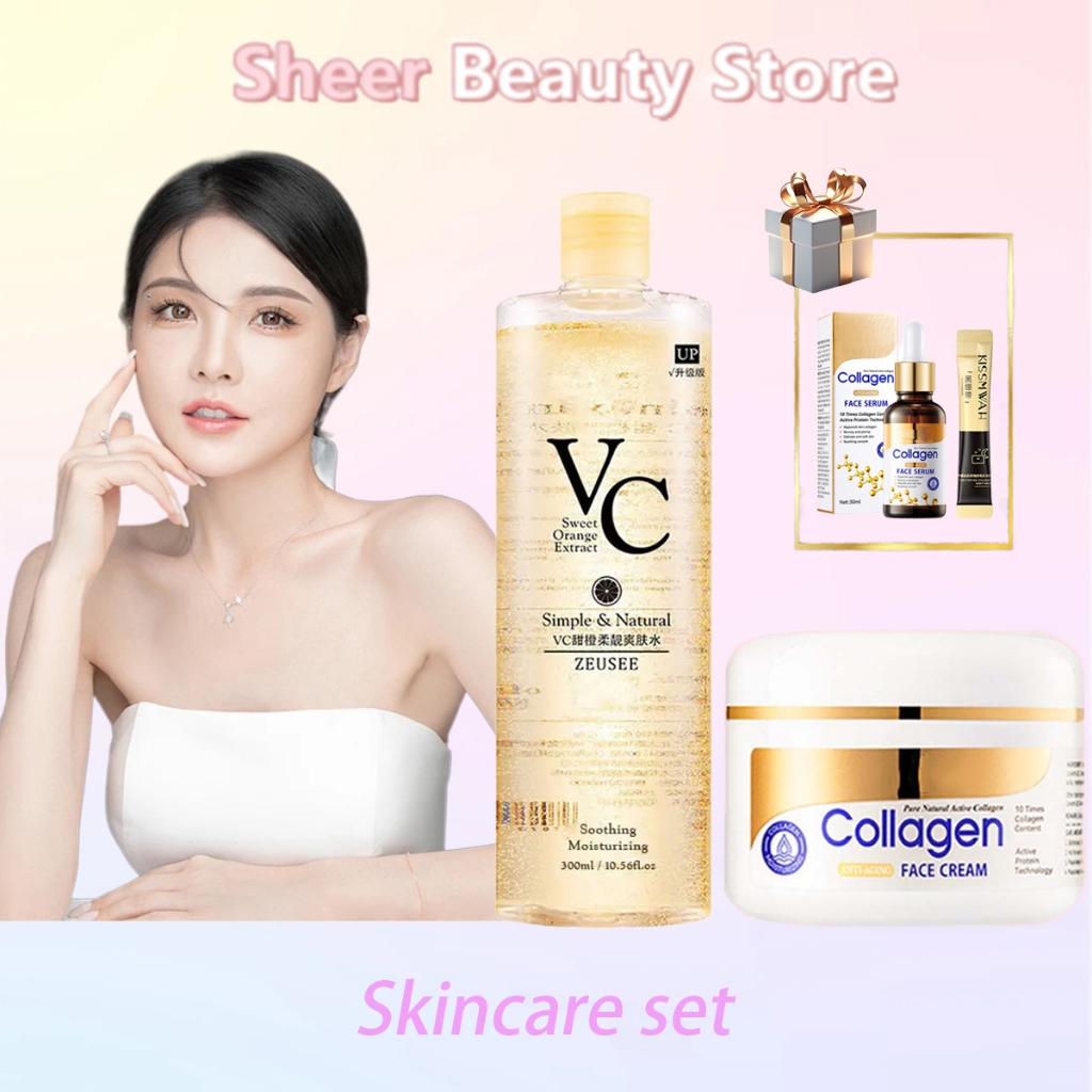 Vitamin C Toner Whitening Anti-Wrinkle Firming Moisturizer Pore Narrowing Skin Care Serum and Mask