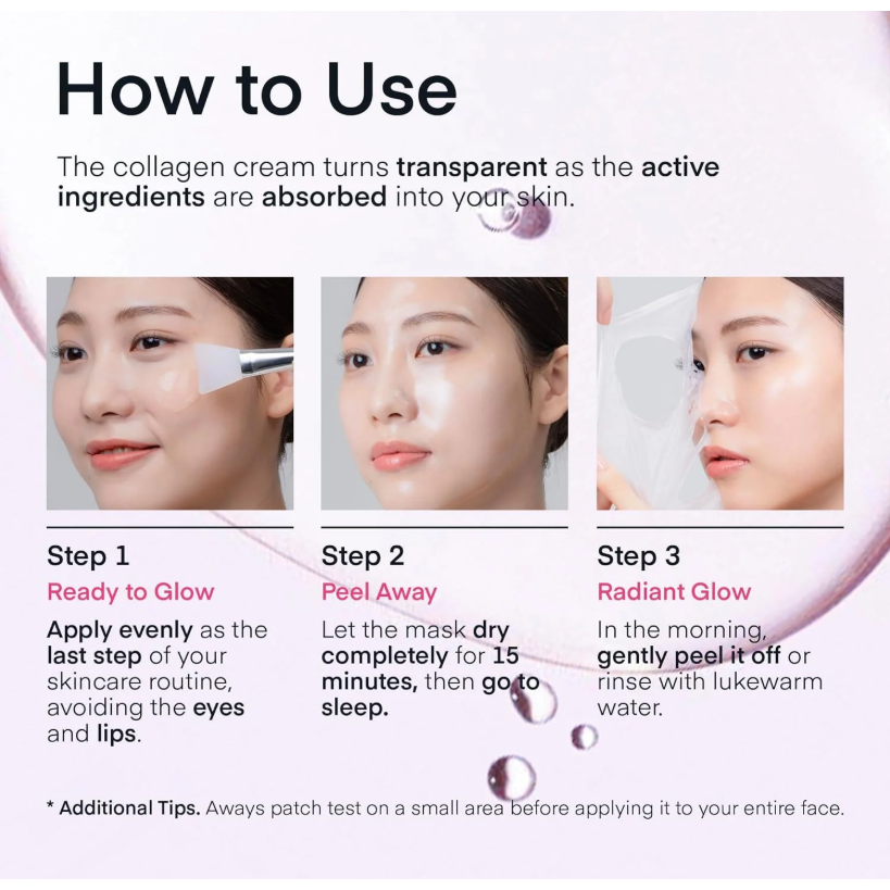 Terez & Honor Collagen Overnight Wrapping Peel-Off Mask 100mL Korean Face Mask Hydrating Moisturizing Firming Anti-Aging Brightening Whitening Smooth Skin Glass Skin K-Beauty Skincare Elasticity Boost Night Care Repair Soft Glow Original