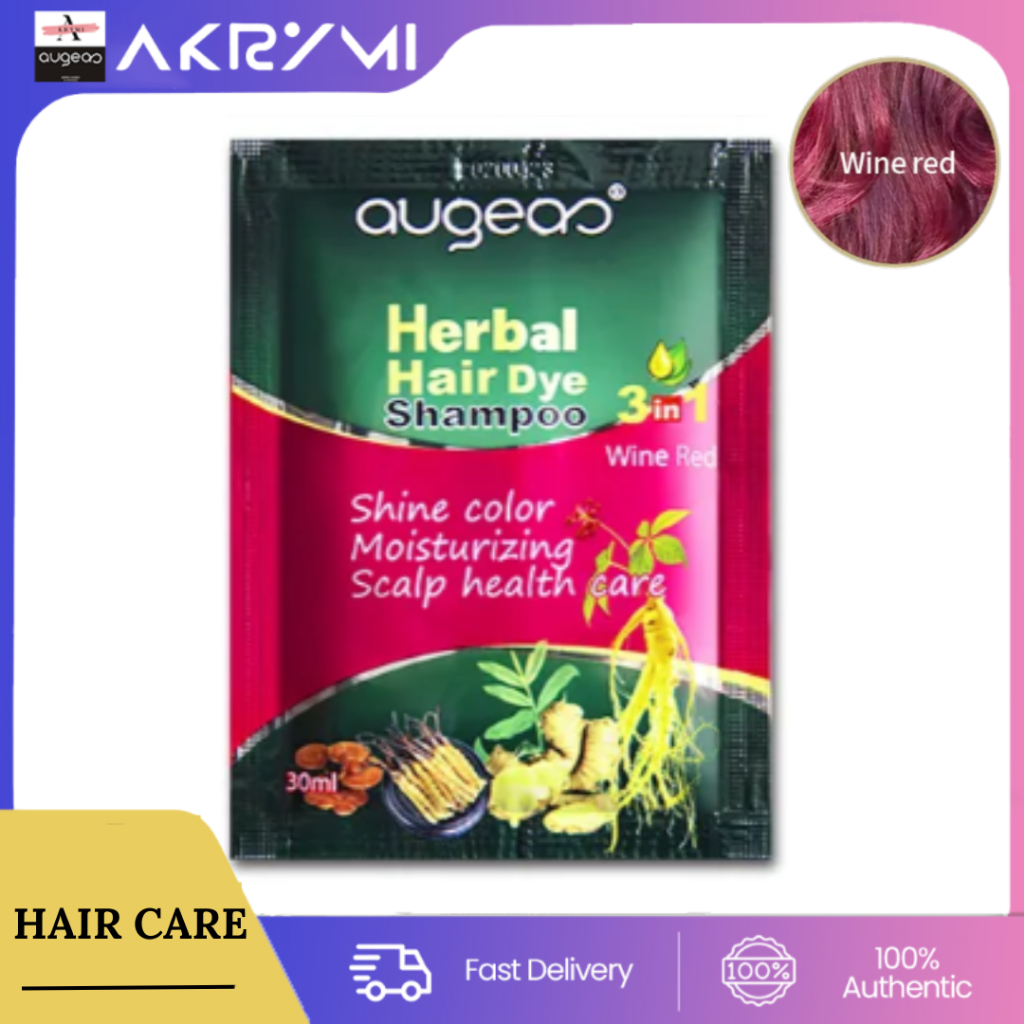AKRYMI AUGEAS HAIR DYE SHAMPOO (WINE RED) 30ML Sachet Pack Haircare FDA Approved