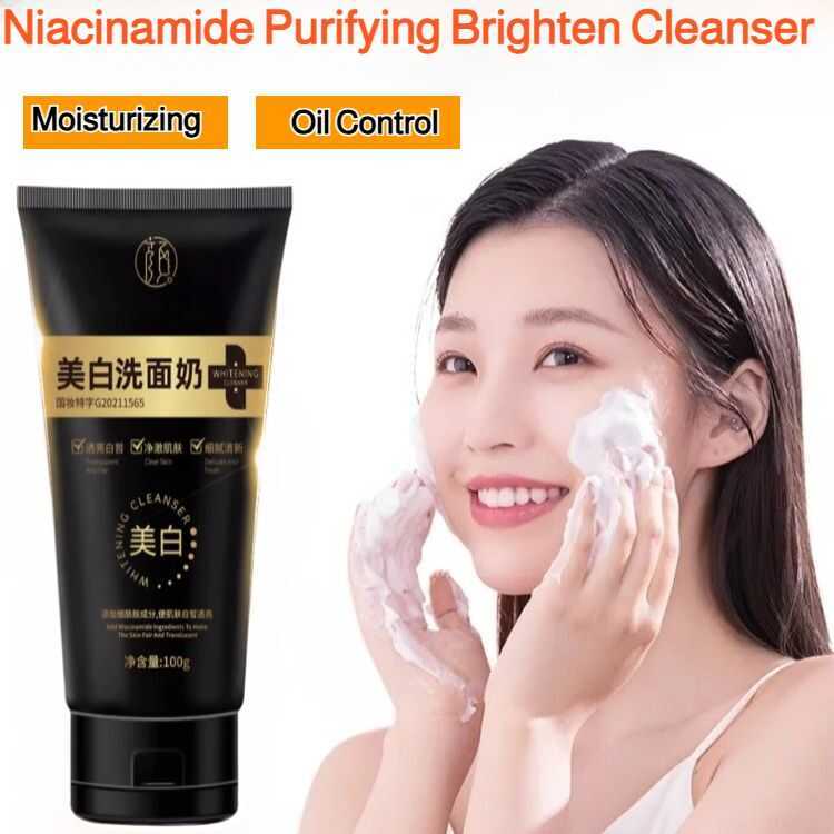 Niacinamide-Infused Brightening Facial Cleanser: Purifies, Whitens, Controls Oil, Moisturizes,