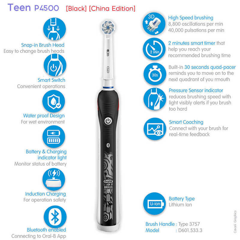 Oral-B Pro 4500 TEEN Electric Rechargeable Toothbrush For Use With Braces [China Edition] 225