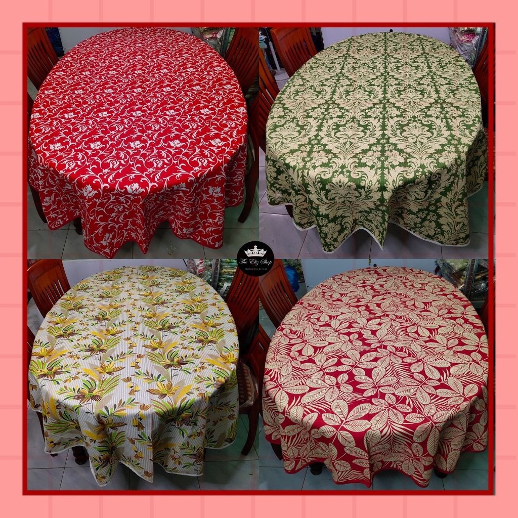Oval Red, Green, Yellow Table Cloth Red Flower Oblong Table Linen & Chair Cover (Tela)