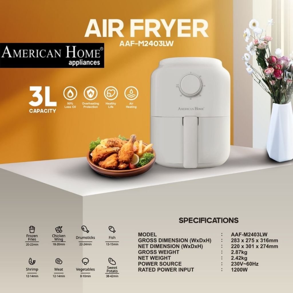 American Home AAF-M2403LW Air Fryer 3L Cream