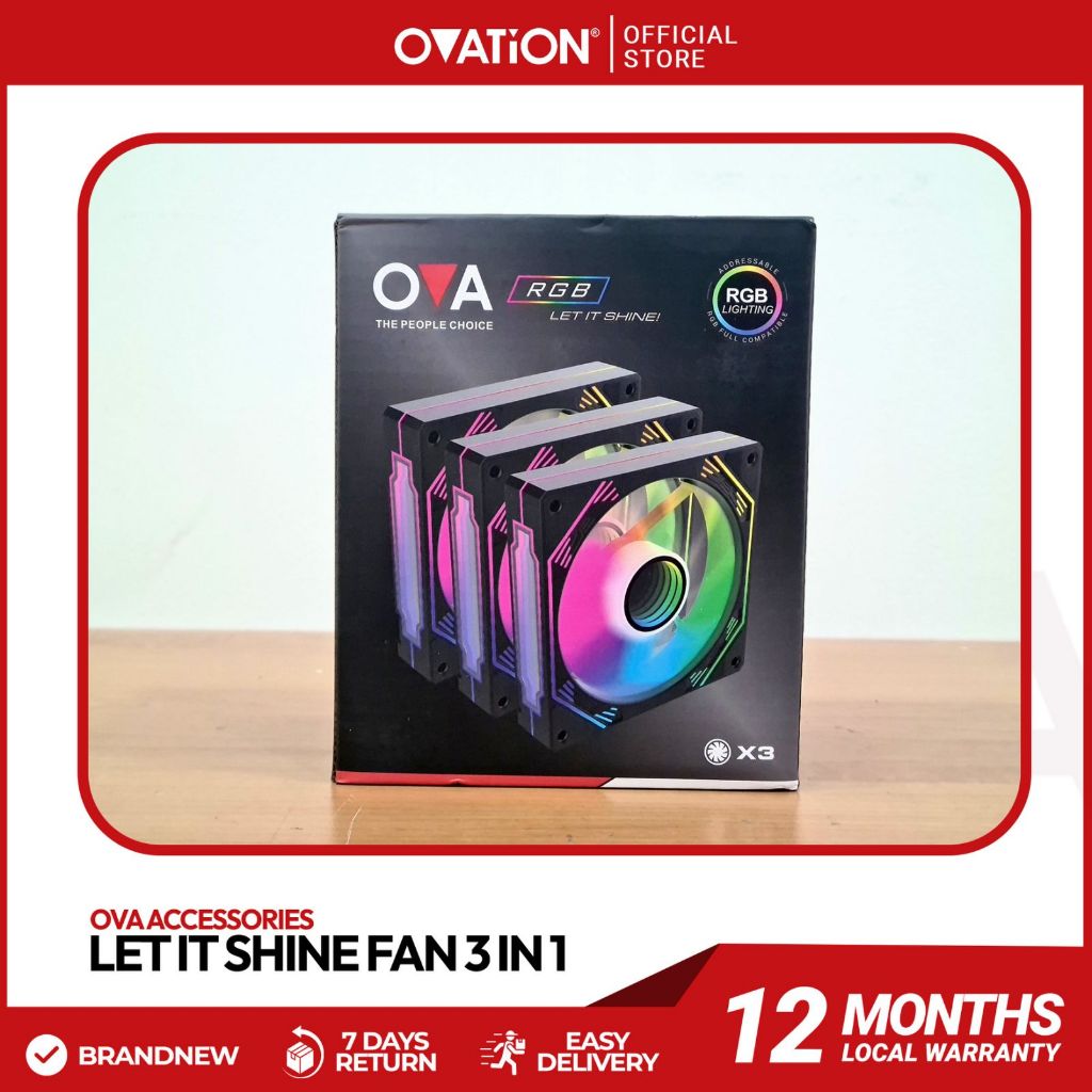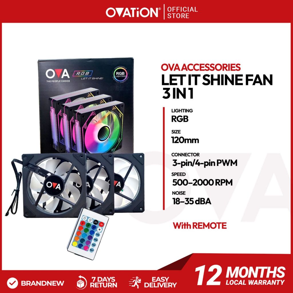 Ovation Let It Shine ARGB CPU Cooling Fan with Multi-Color LED Lights and 12V 1200RPM SATA 6 PIN