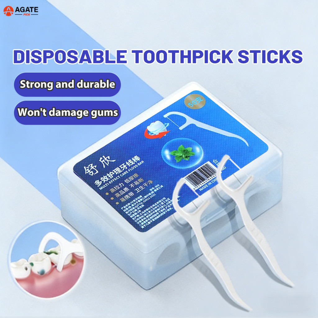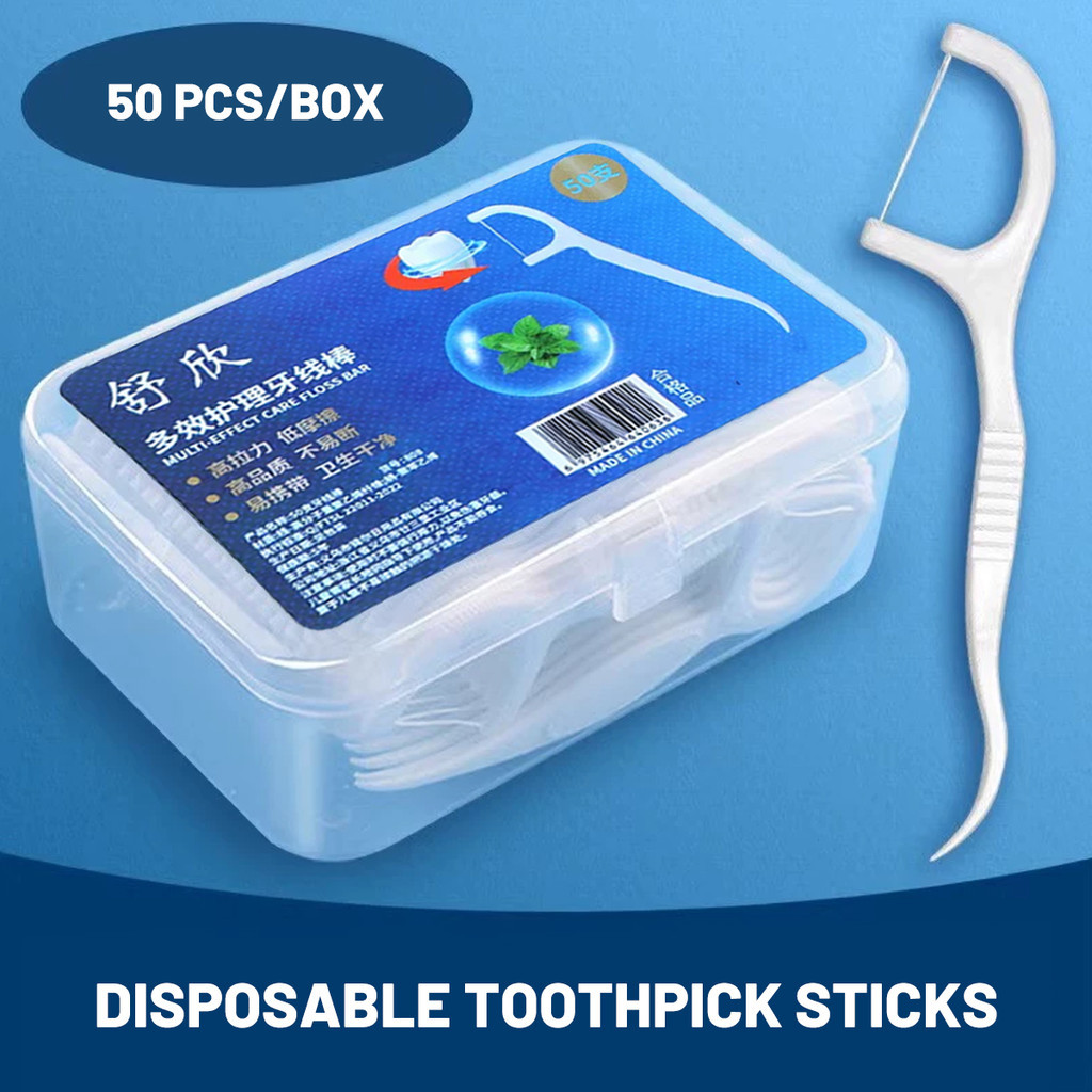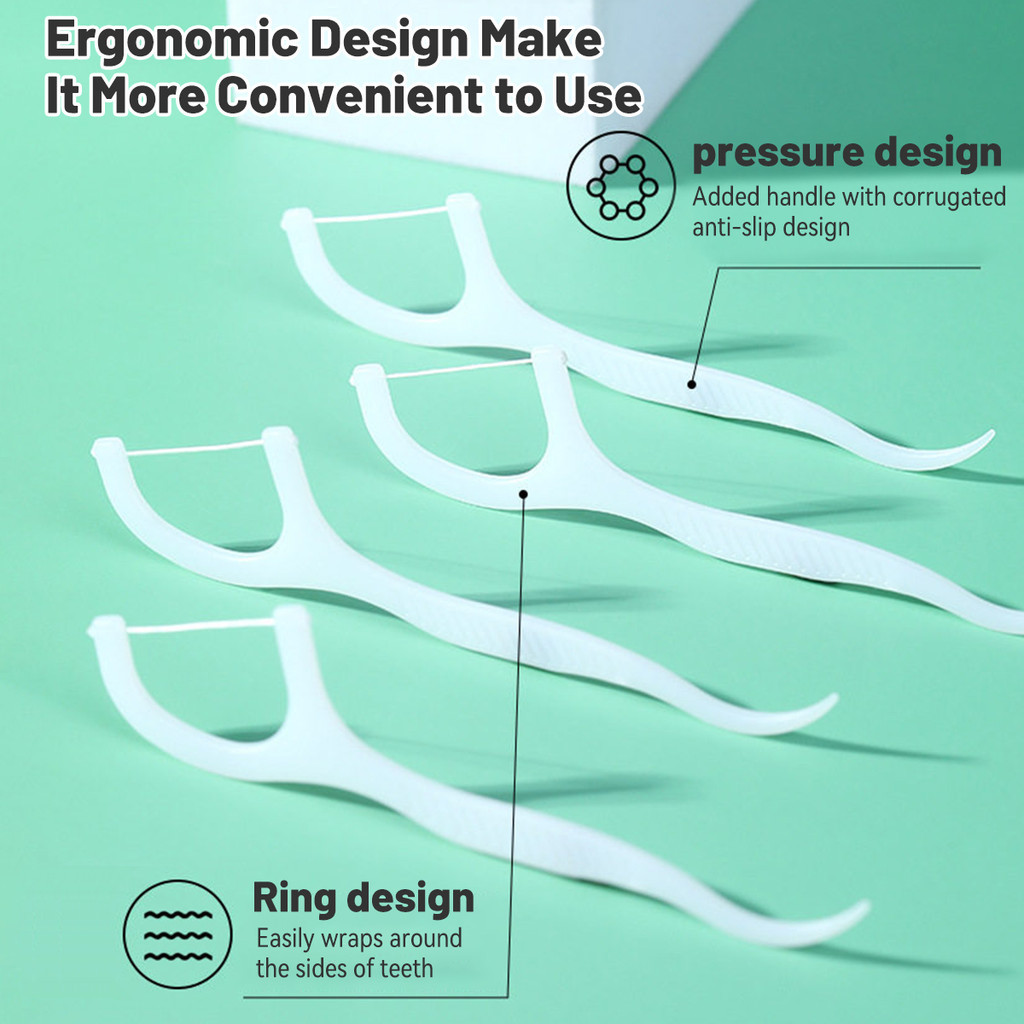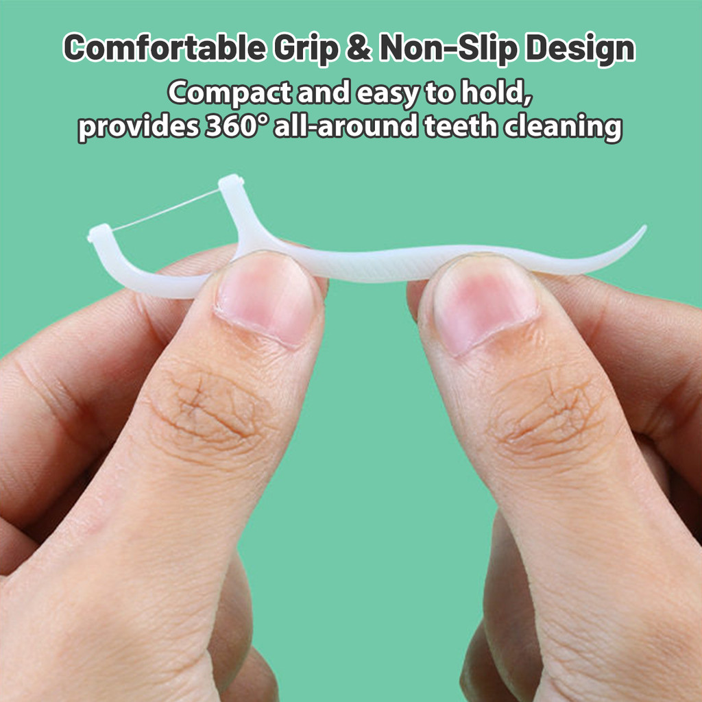 Teeth Cleaning Oral Care Stick Set Portable 50 Pcs Dental Floss Picks with Arc Hook Design
