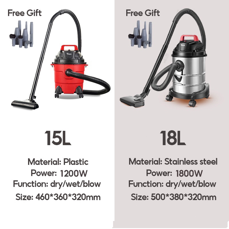 Tixx 18KPa Blower Vacuum Cleaner for Home Wet and Dry 1200W ABS/Stainless Car Vacuum Cleaner For Bed