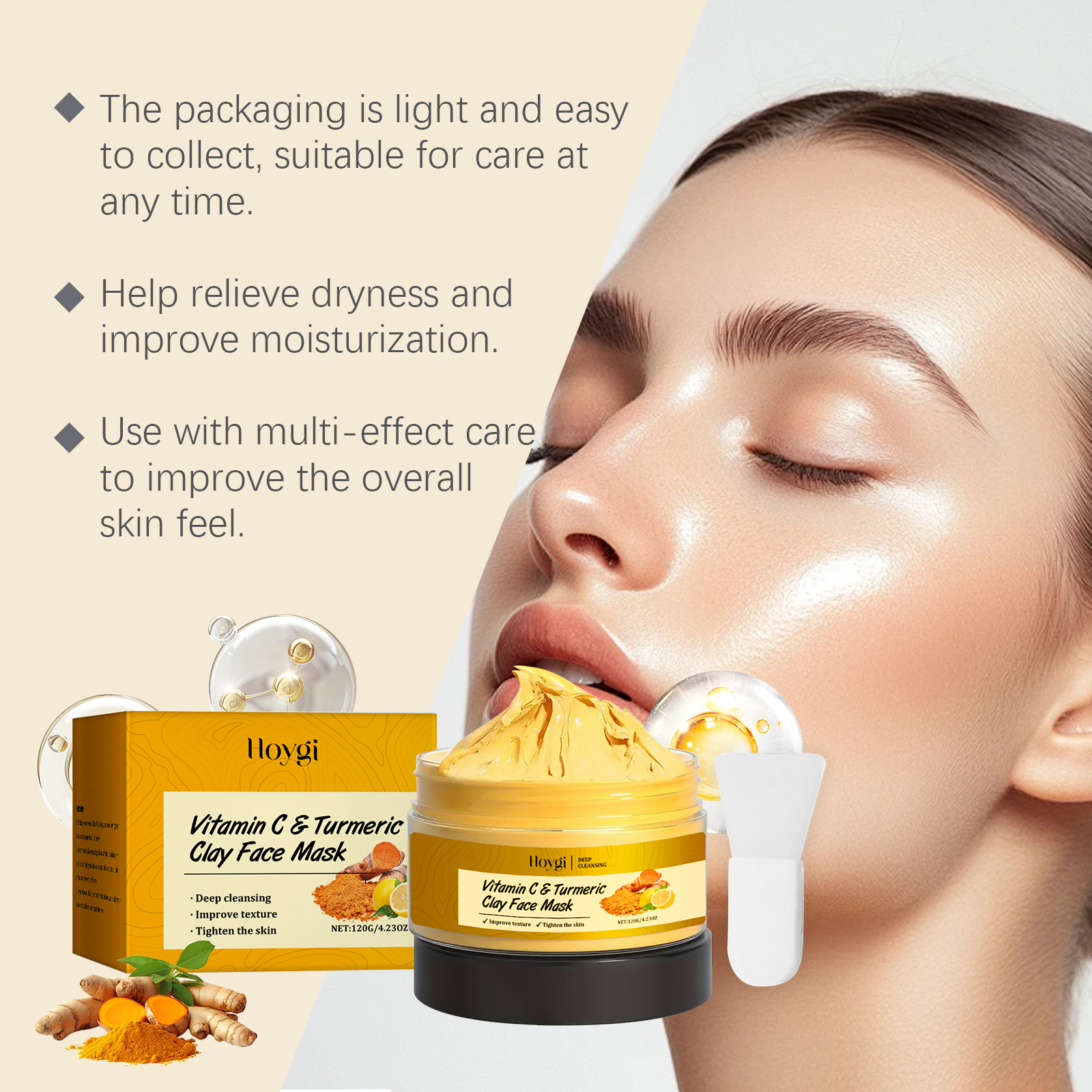 Hoygi Vitamin C Turmeric Clay Face Mask Oil Control and Skin Cleansing Brighten Skin Tone Hydrating Firming Facial Skin Cleans Pores Cleansing Mud Mask