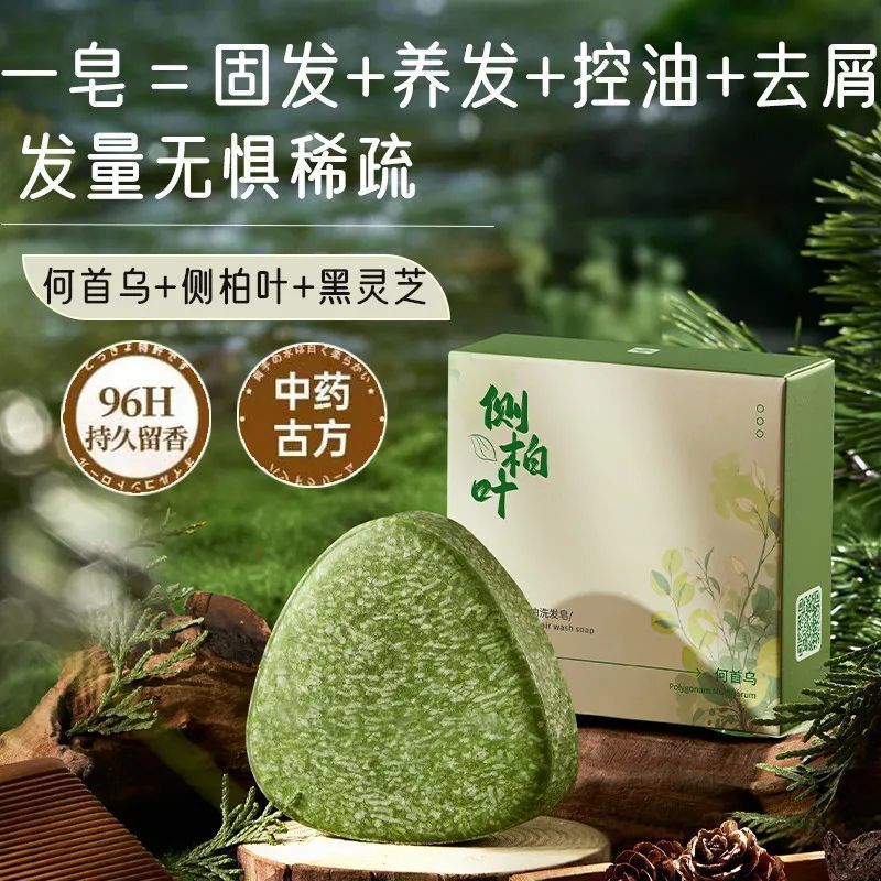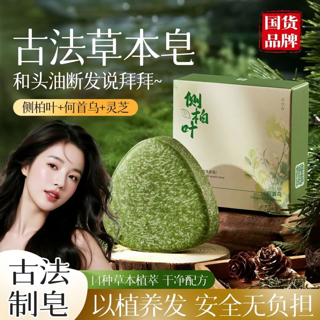 老牌侧柏叶何首乌养洗发皂清爽防断去屑止痒洗头亮黑纯粉古法皂成Veteran Platycladi Polygonum multiflorum nourishing shampoo soap refreshing prevention20260202