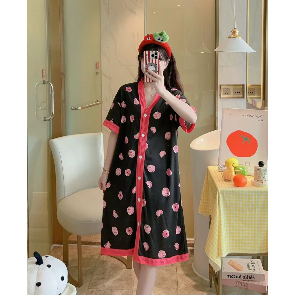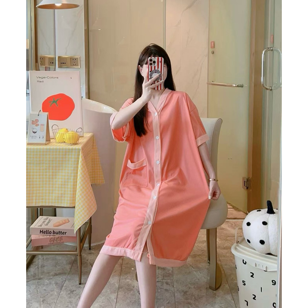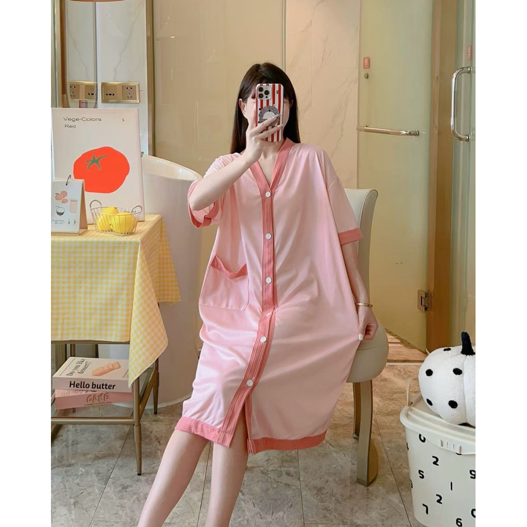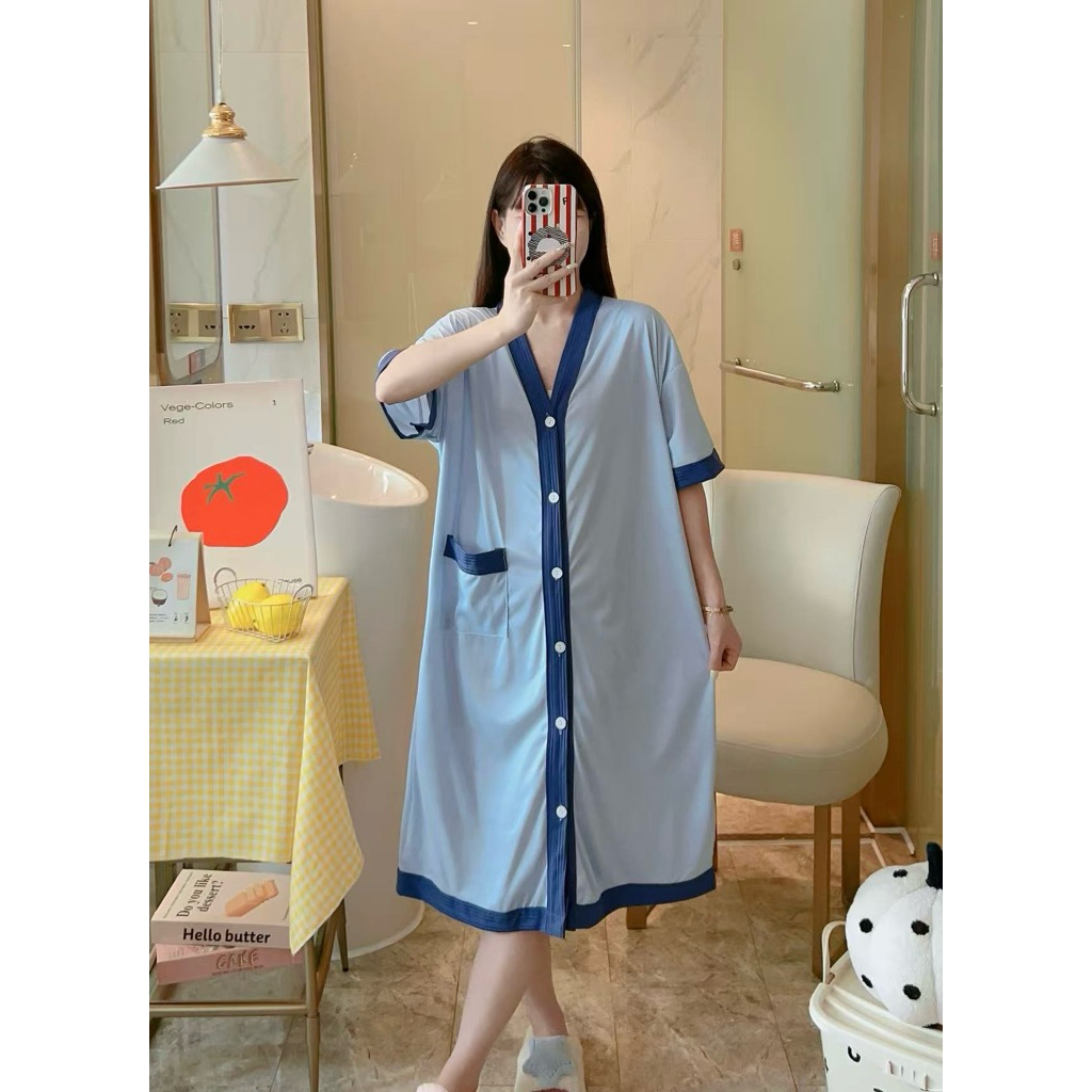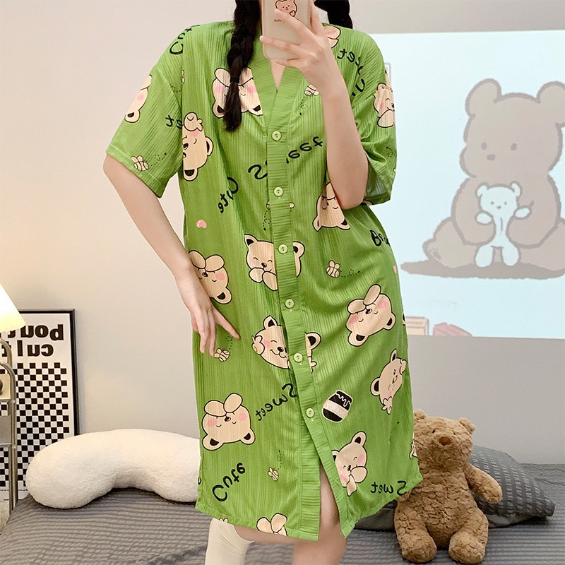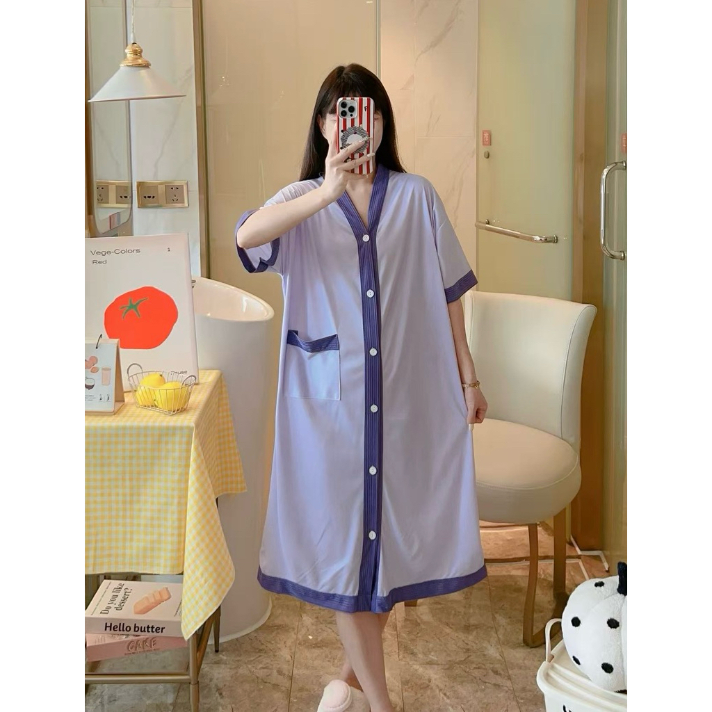 Korean Daster plus size cotton Vneck cardigan fashion nightgown/bathrobe/Pregnant woman sleepdress