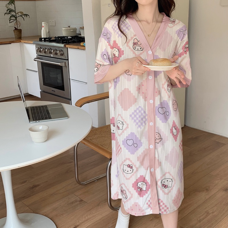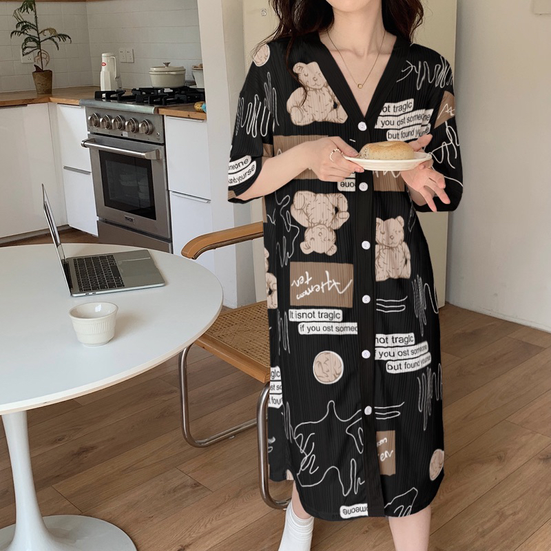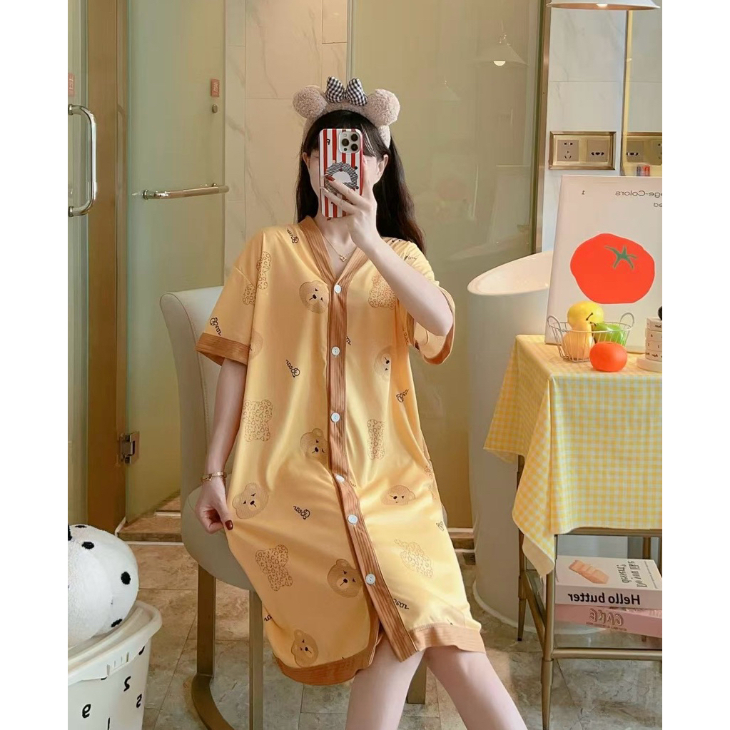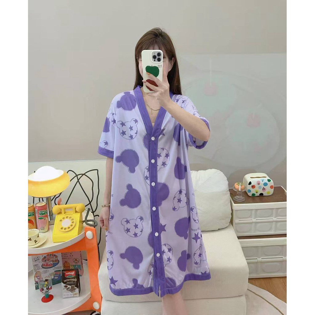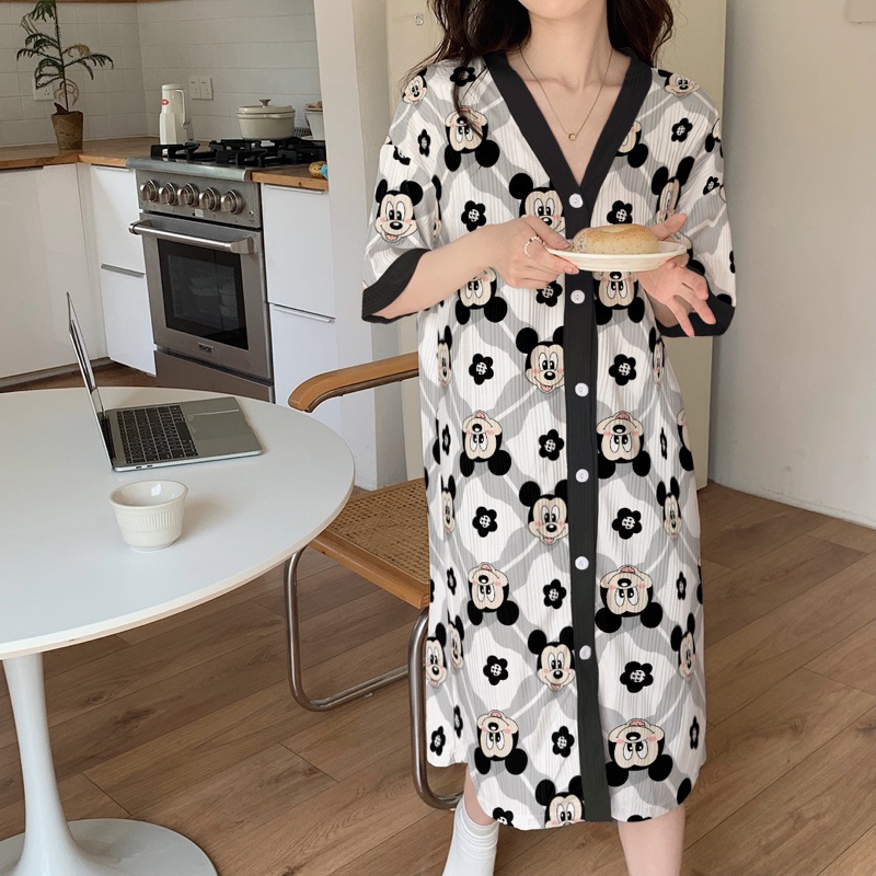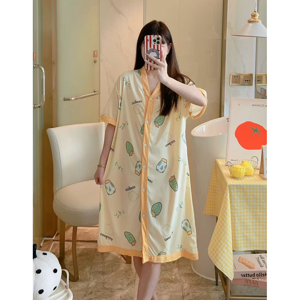 Korean Daster plus size cotton Vneck cardigan fashion nightgown/bathrobe/Pregnant woman sleepdress