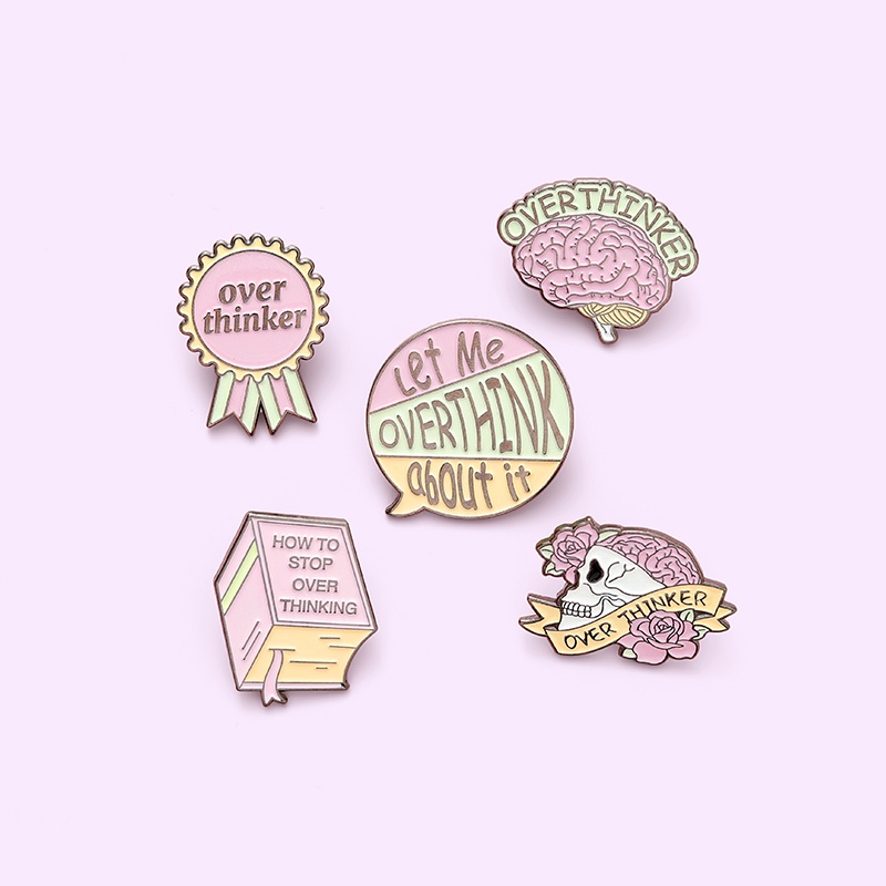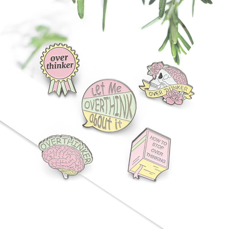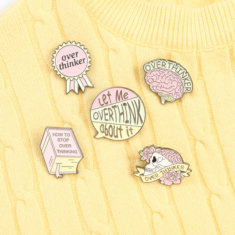 Overthinker Enamel Pin Custom Overthinking Award Brain Skull Book Brooches Bag Lapel Pin Cartoon Badge Jewelry Gift for Friends