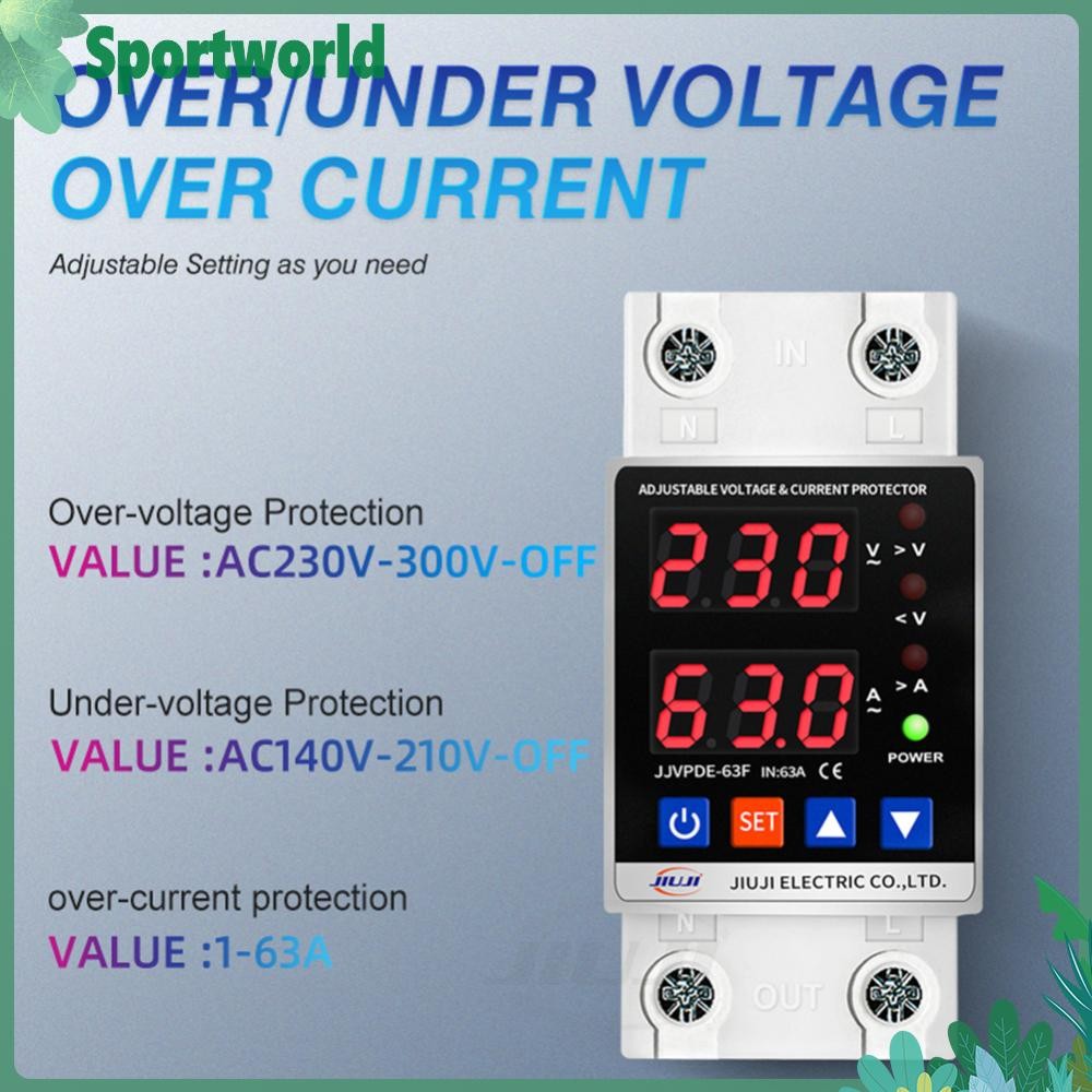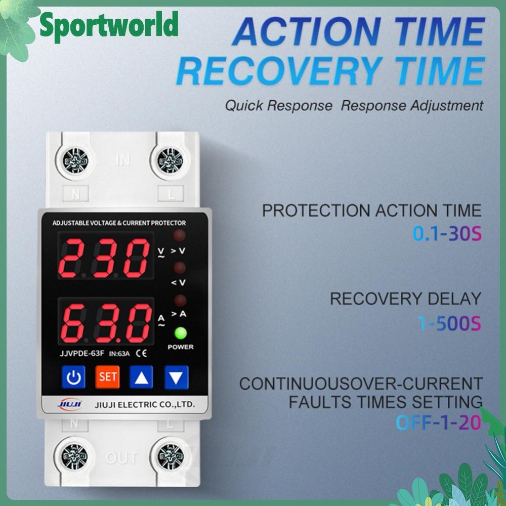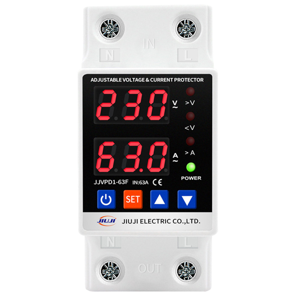 Overvoltage Protection Device Dual Display Overvoltage Over Current Protection Device Adjustable Din Rail for Home Office Appliance