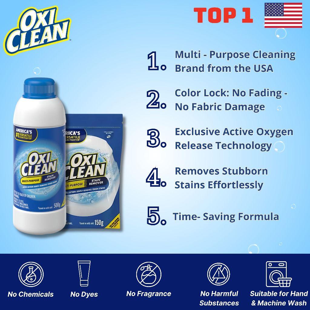 Oxiclean Multi Purpose Cleaner 3in1- Powerful Stain Remover for Clothes, Drum, Bathroom and Ink 500g