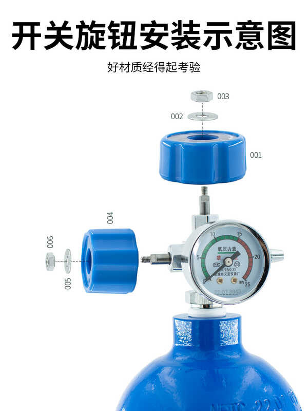 Oxygen gauge swich o regulaing valve, pressure reducing valve knob, flow swich, oxygen