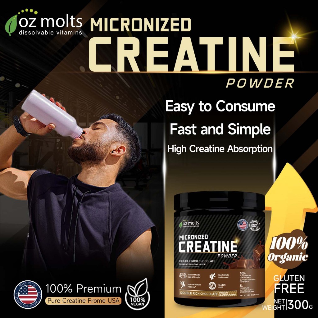 Ozmolts Creatine Monohydrate Powder for Muscle Recovery Workout Supplement Support Fitness Chocolate