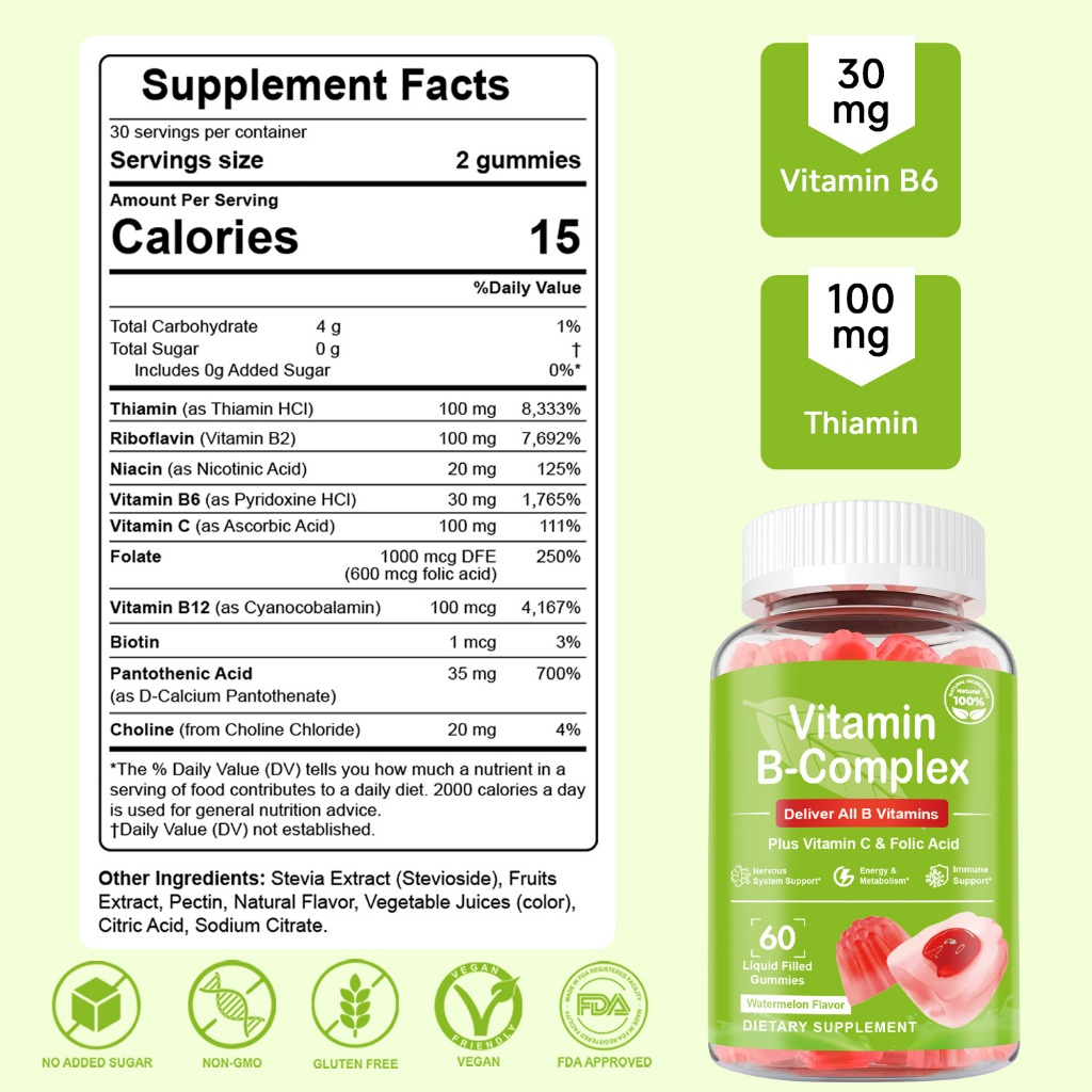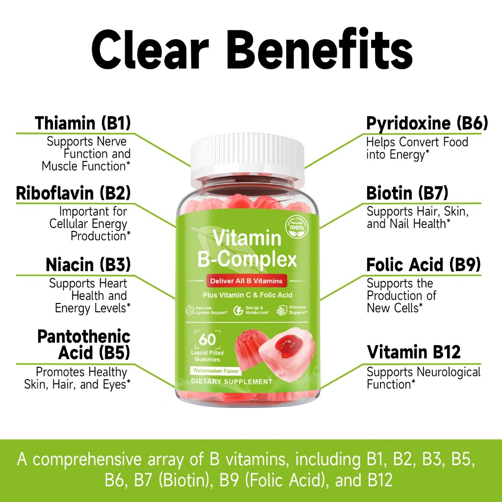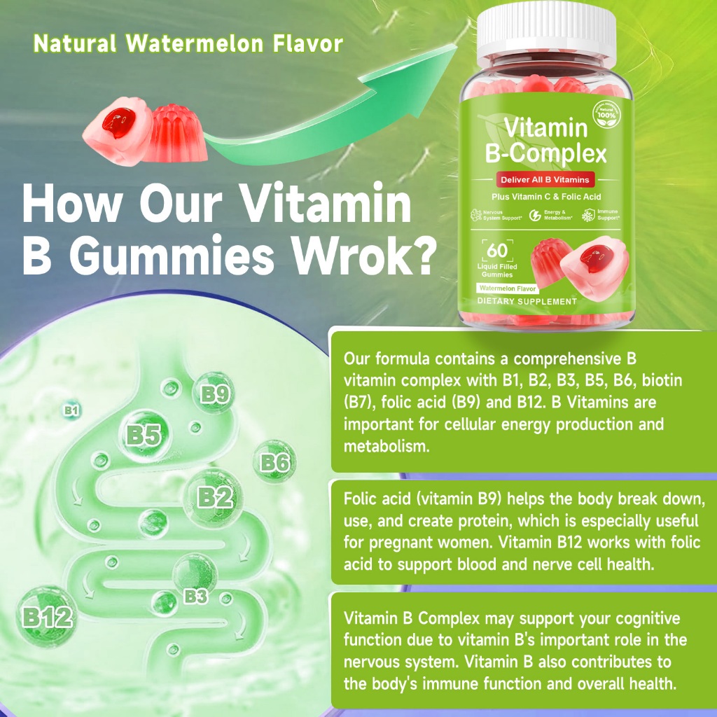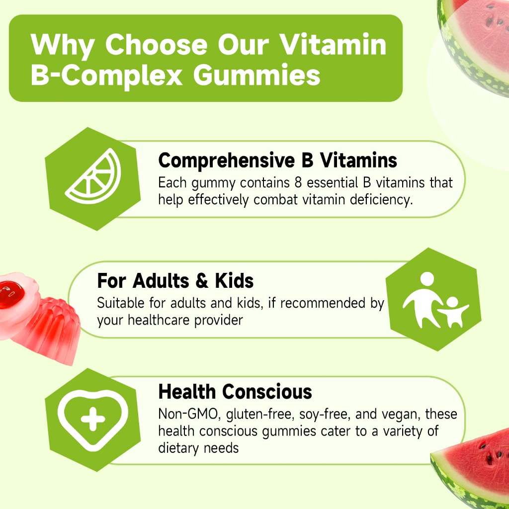 Ozmolts Vitamin B Complex Gummies Health Supplement Multivitamins for Adults Vegan Vitamin B Gummy