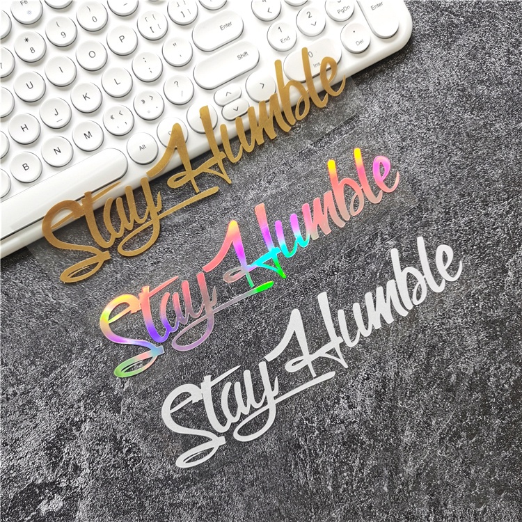 P-A519. stay humble Reflective Stickers Keep Modesty Text Laser Car Stickers Windshield Cover Stickers Car Stickers Motorcycle Decoration Stickers