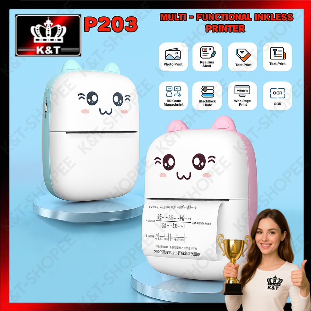 P203 Multi-Functional Mini Bluetooth Thermal Inkless Printer Photo Label Paper Text Pocket Printer
