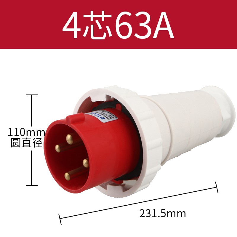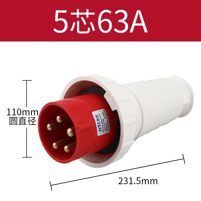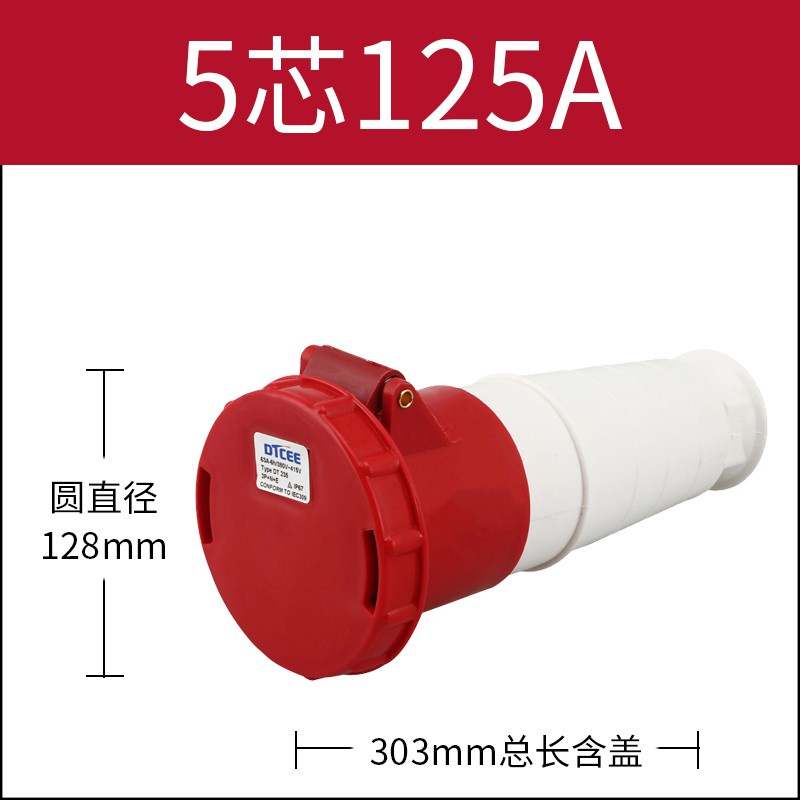P67 Waterproof Industrial Plug Connector 63A/125A3 Core 4 Cores 5 Holes Explosion-Proof Aviation Socket Male Female Butt