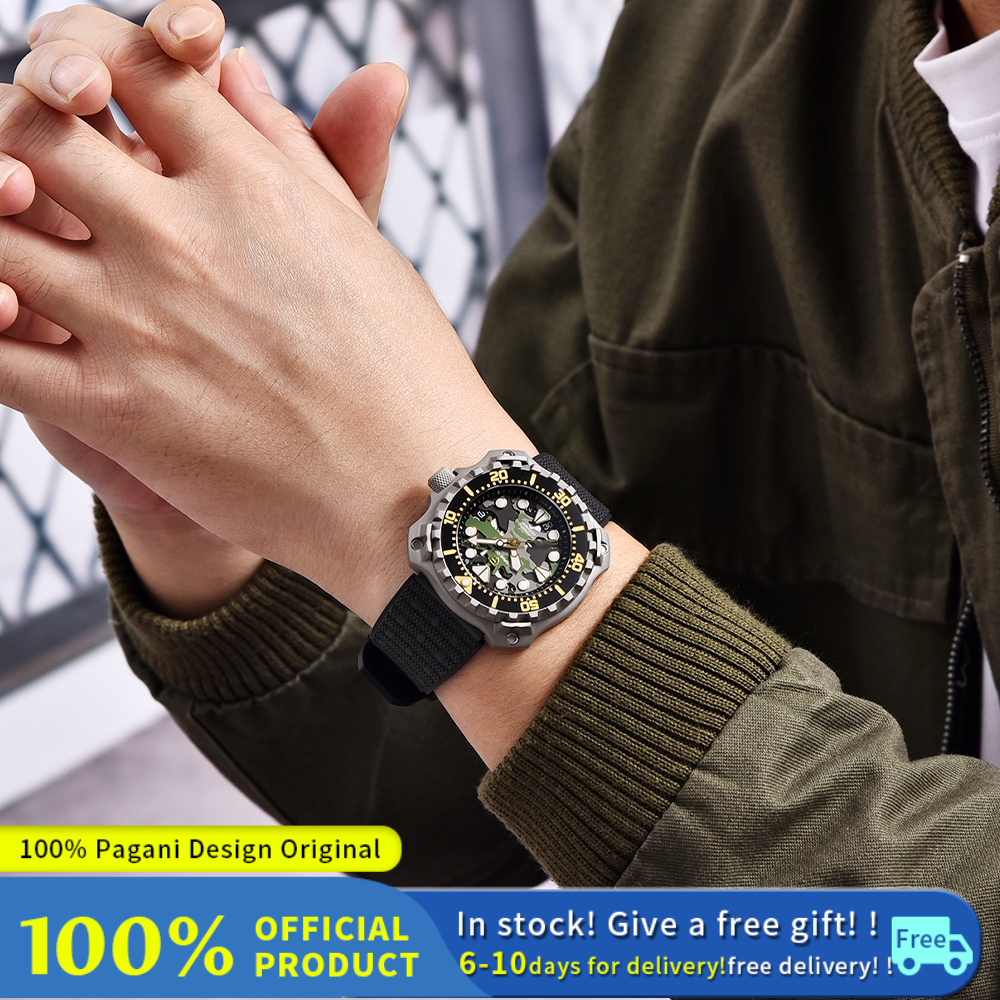 PAGANI DESIGN original 2024 new military automatic watch for men fashion camouflage hollow dial watch for men diving 200M watch for men water proof sports mechanical watch PD-YN009