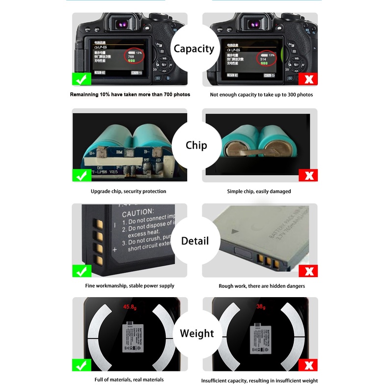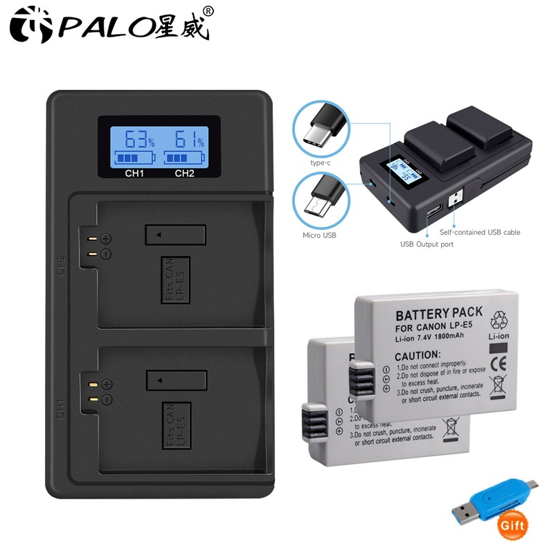PALO LP-E5 Battery 7.4V 1800mAh for Canon EOS Rebel XS Rebel T1i Rebel XSi 100