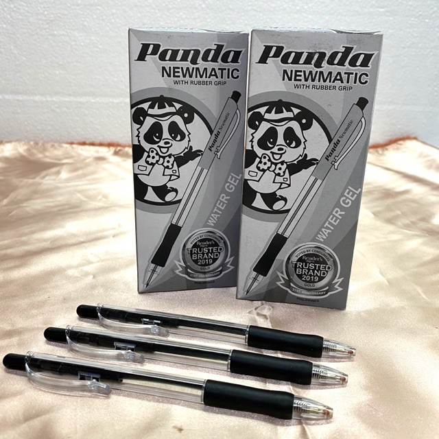 PANDA NEWMATIC with rubber grip water gel pen , retractable ballpen , black color ink , 12 pcs