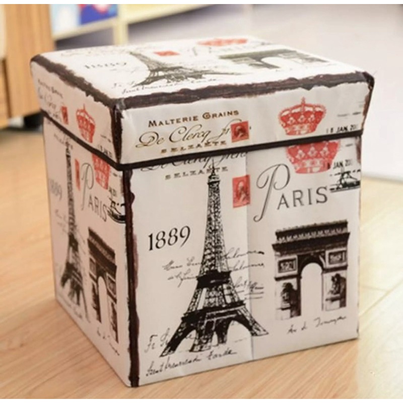 PARIS STORAGE BOX - High Quality and New Improved Foldable Ottoman Eiffel Tower Paris 1889