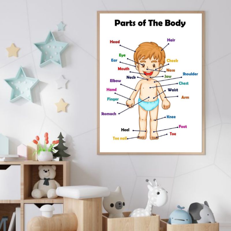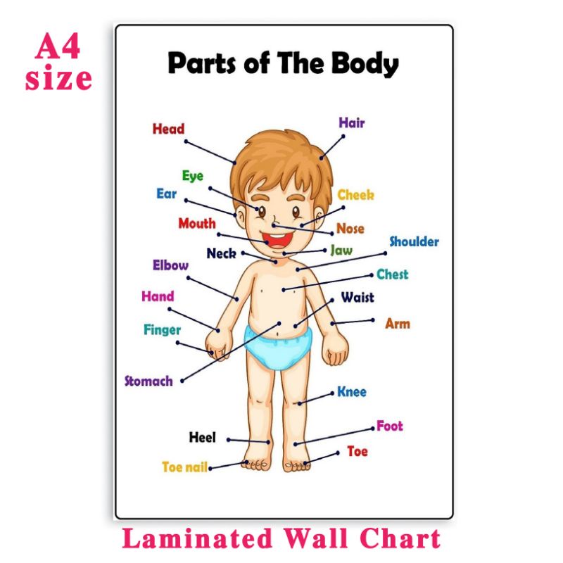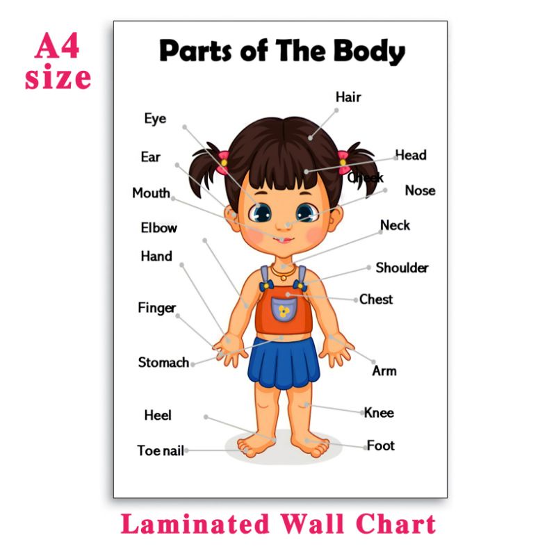PARTS OF THE BODY Educational Laminated Wall Chart | A4 Size | For Kids Learning