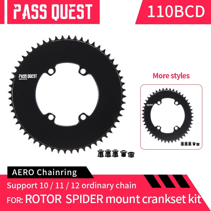 PASS QUEST Rotor BCD110 AERO Crankset Narrow Wide Chainring Round Road Bike Fold Bike Black Chinwheel 40T-60T 9-12 Speed