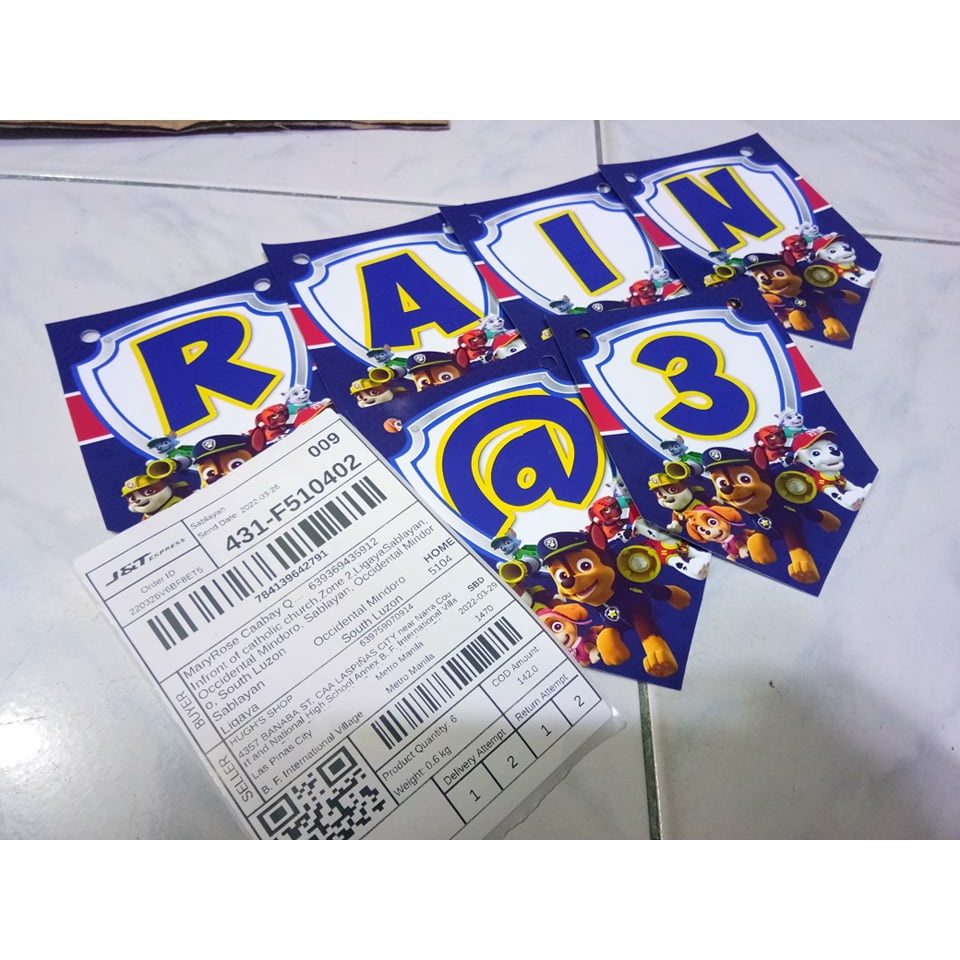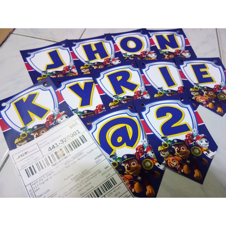 PAW PATROL PERSONALIZE BIRTHDAY BANNERS ,Name Banner, Happy Birthday (1flag per LETTER )