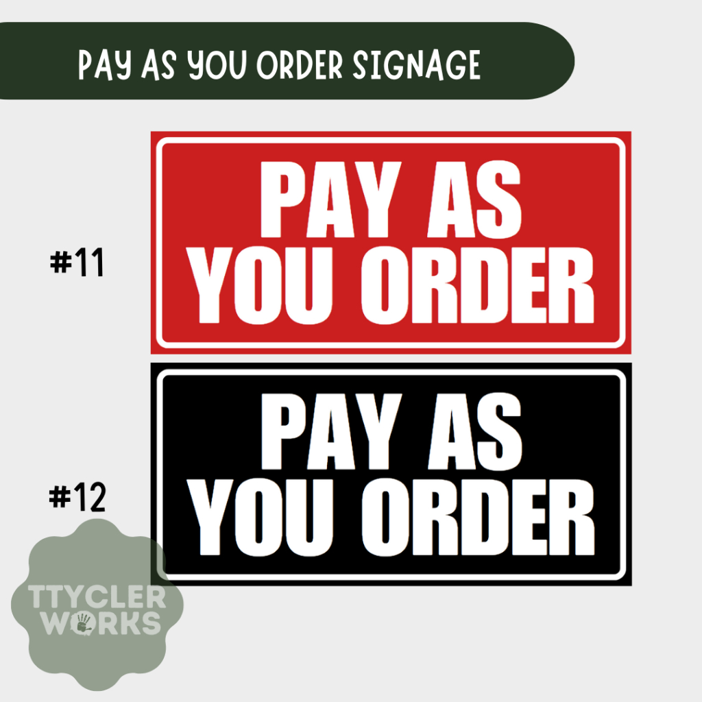 PAY AS YOU ORDER SIGNAGE PVC/LAMINATED/STICKER