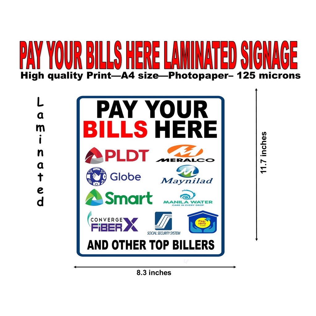 PAY YOUR BILLS HERE LAMINATED SIGNAGE A4 SIZE