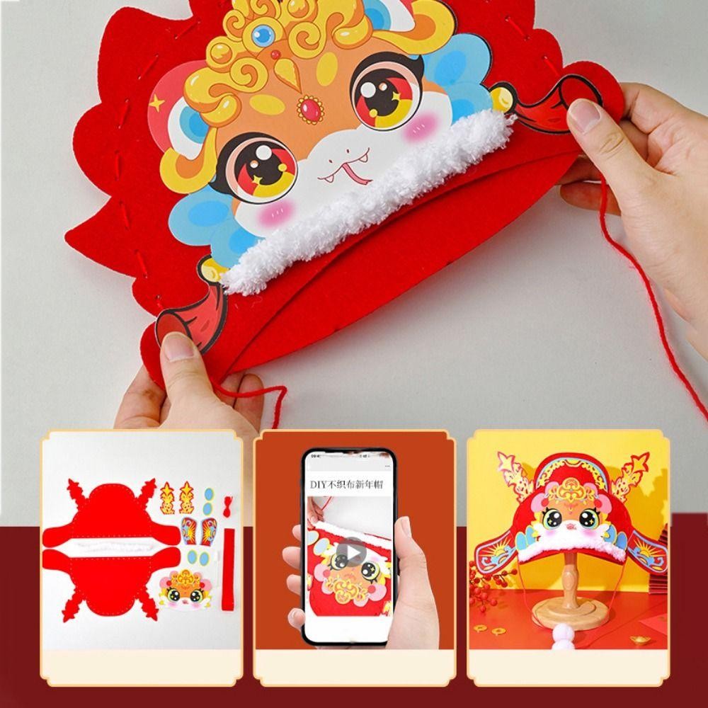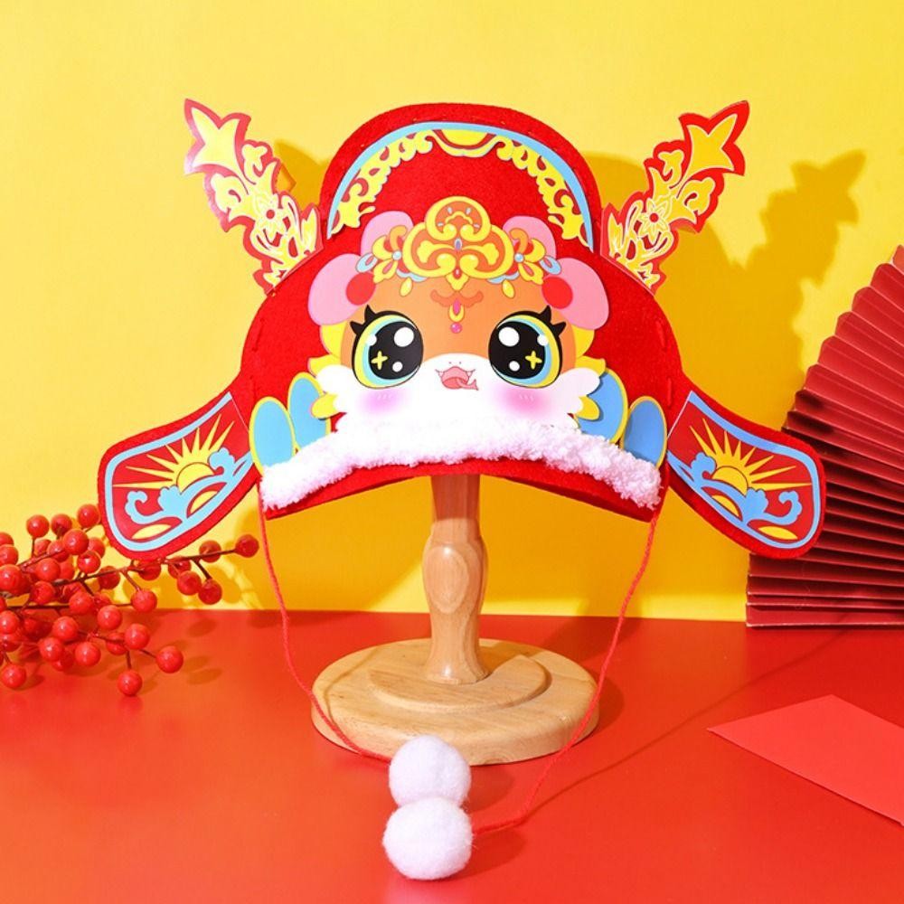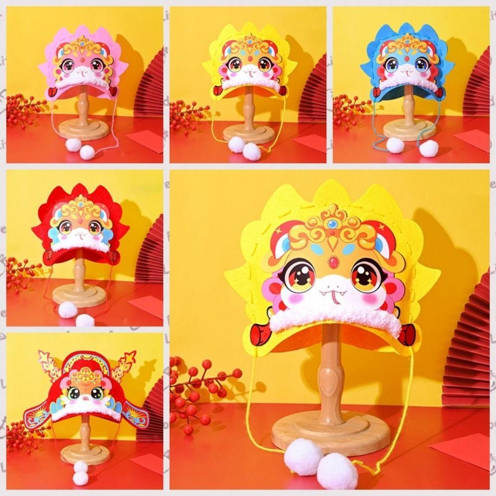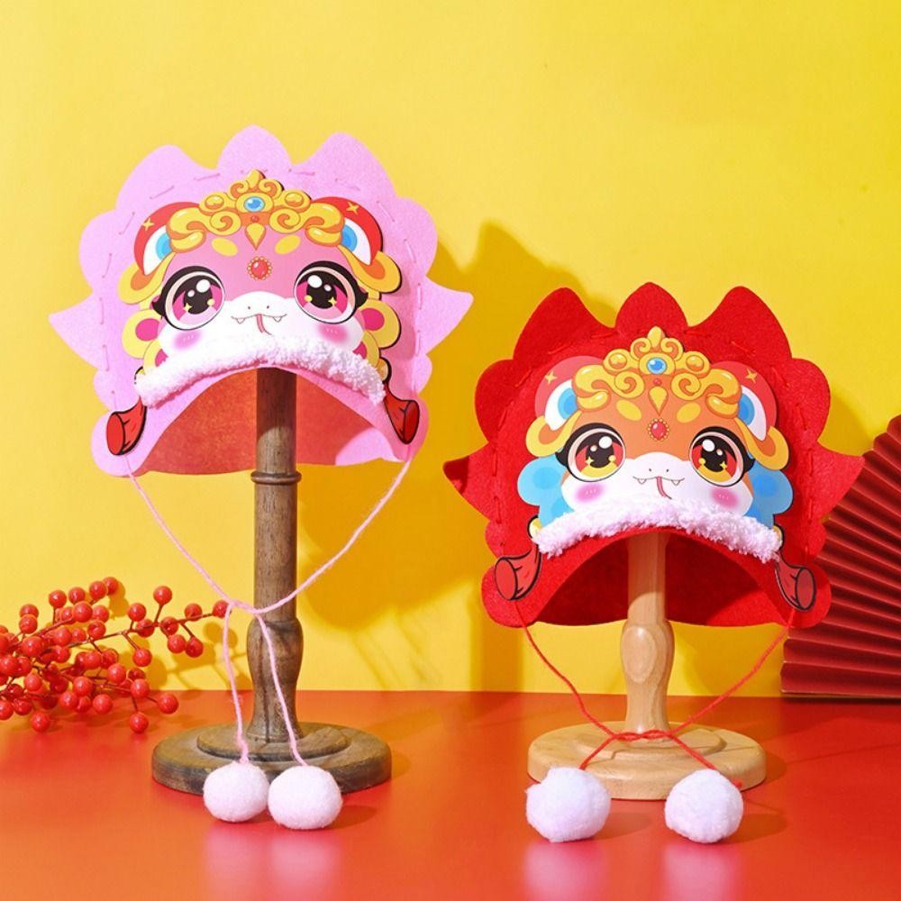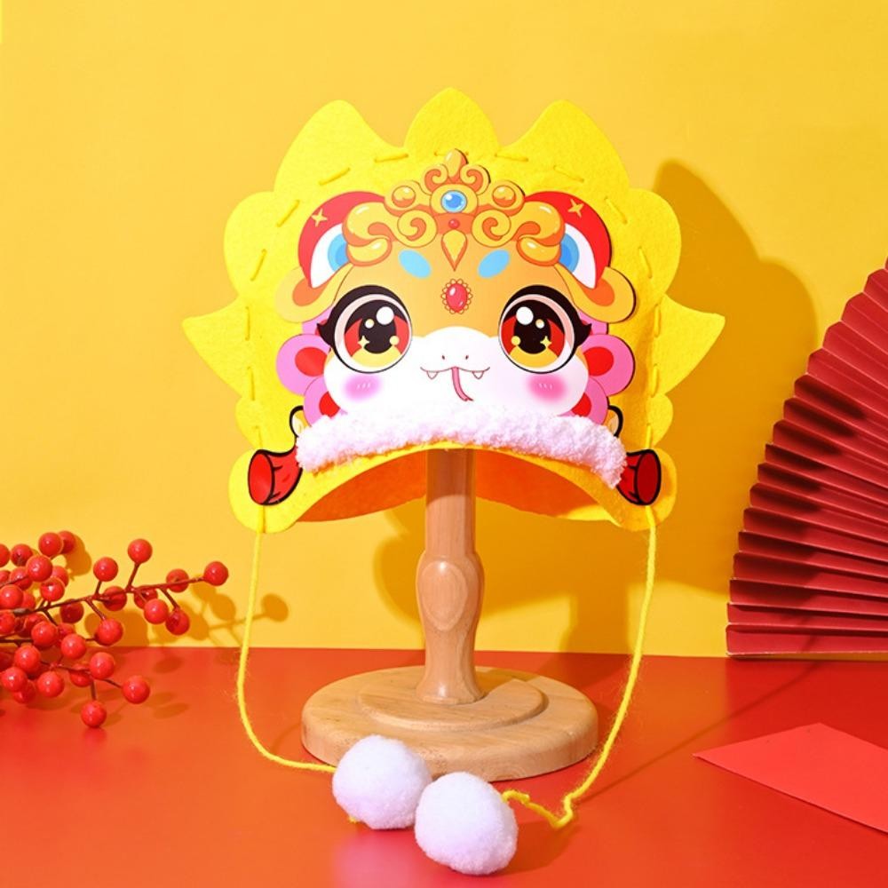 PBFASH Chinese New Year Hat, Hand Assembly Chinese Style Cartoon Snake Hat, DIY Material Pack Traditional Blessing Handmade Zodiac Snake Head Hat Boy Girl Gifts