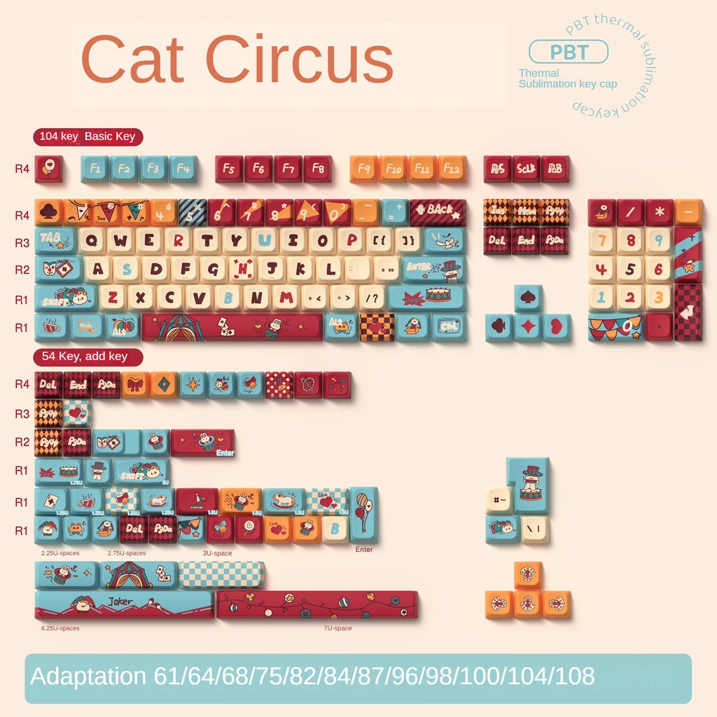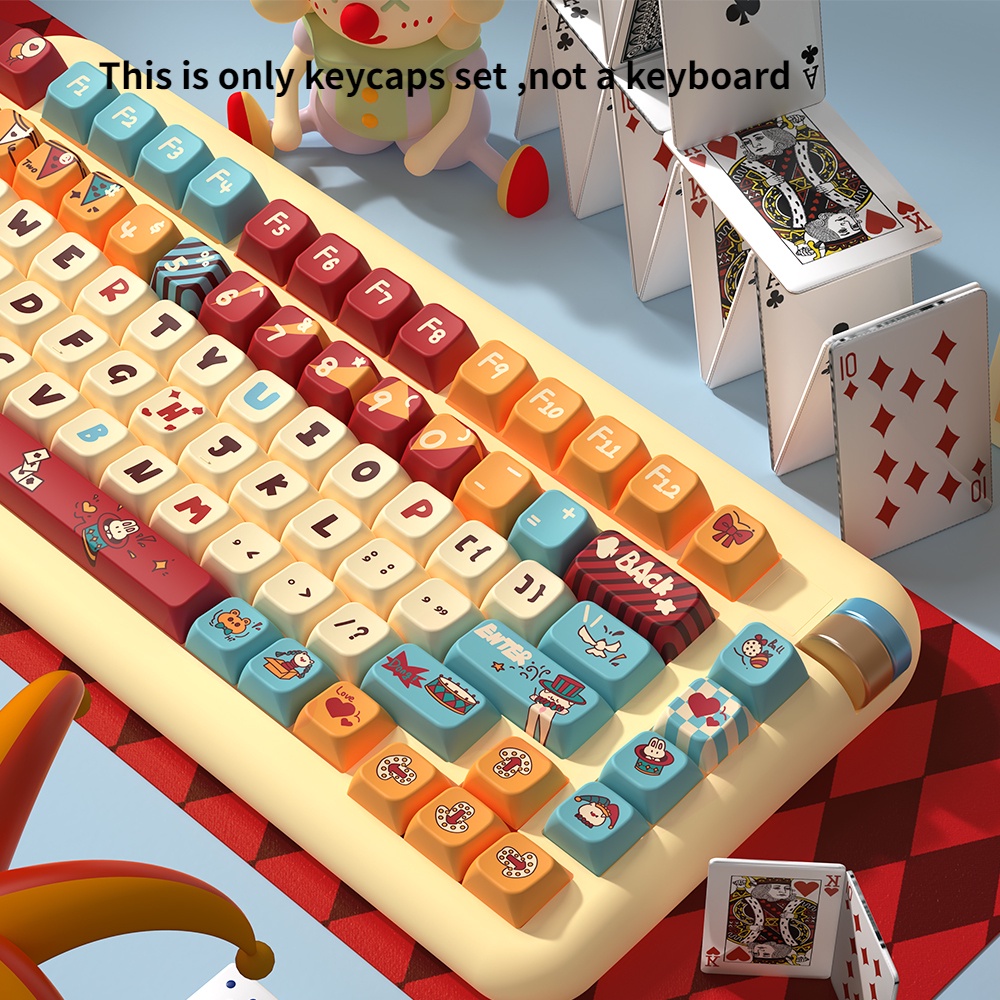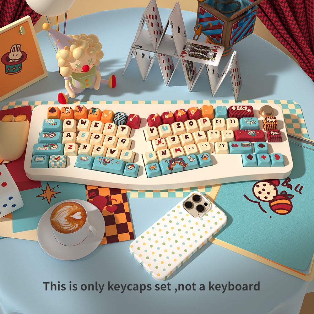 PBT Cat Circus Cartoon Theme Keycaps MDA Height Adorable Personalized Creative Keycaps Adaptable To 61/63/64/67/68/71/75/78/82/84/87/96/98/100/104/108