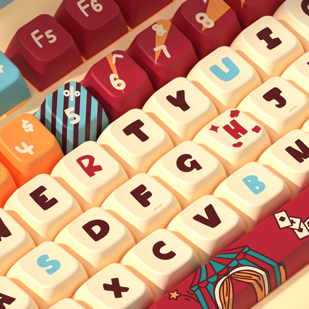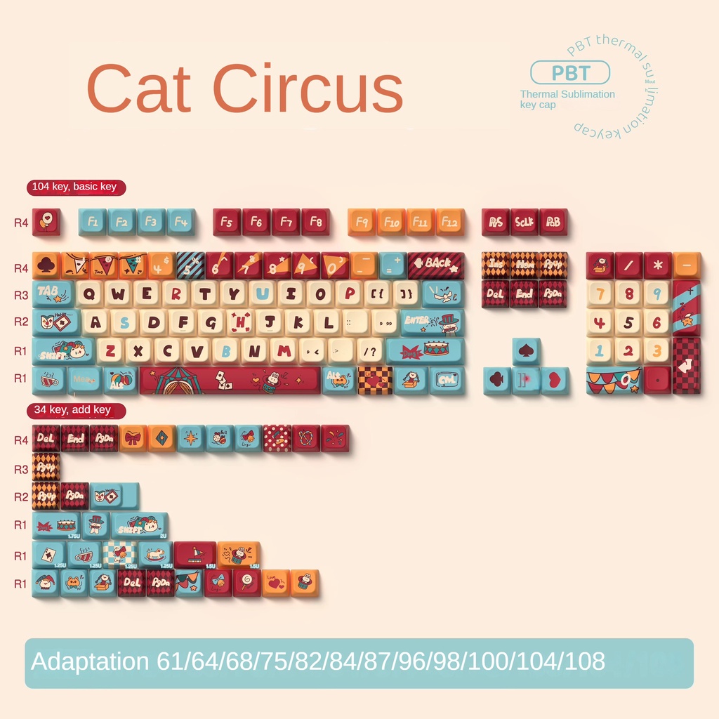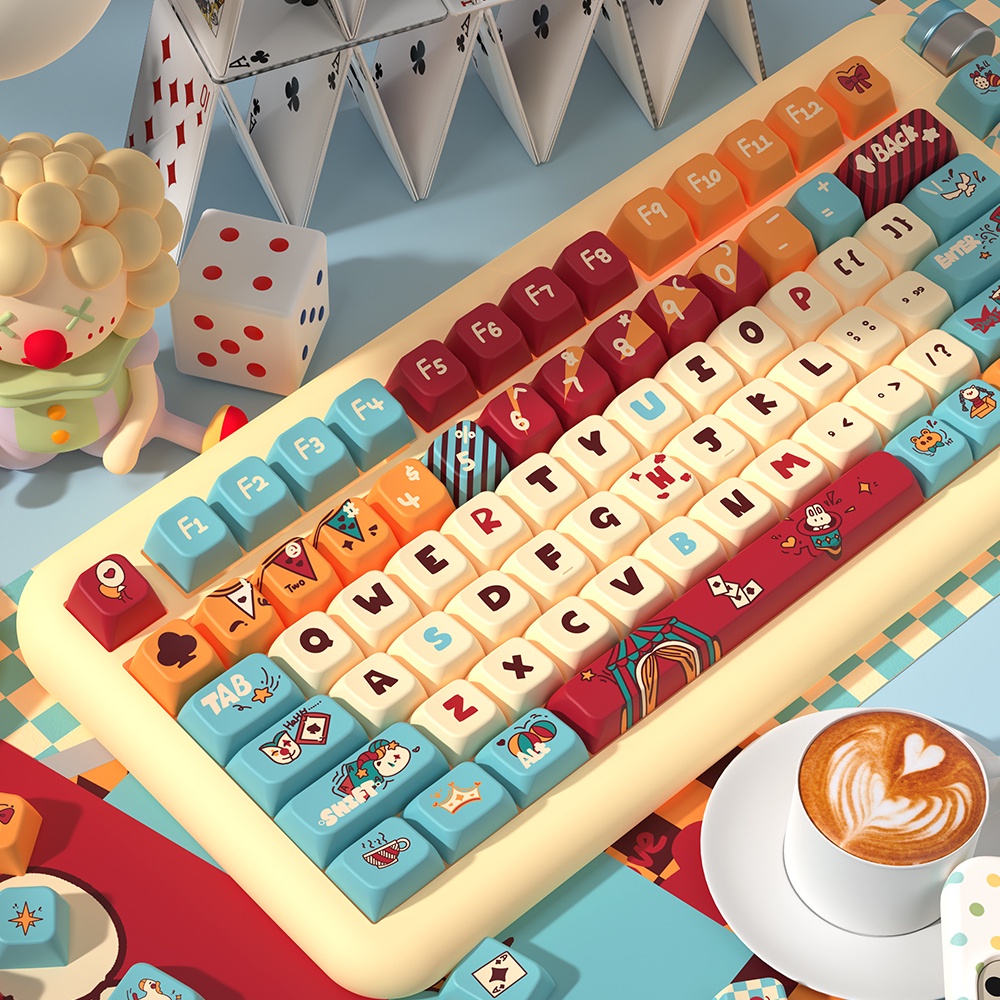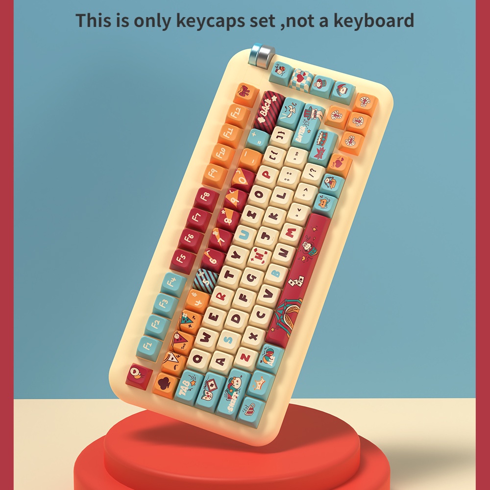 PBT Cat Circus Cartoon Theme Keycaps MDA Height Adorable Personalized Creative Keycaps Adaptable To 61/63/64/67/68/71/75/78/82/84/87/96/98/100/104/108
