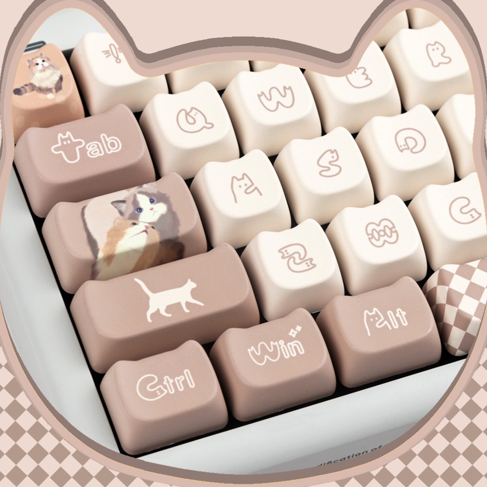 PBT Cat Ear Shape Keycaps 144Keys/Set MAO Profile Full Key Five-sided Heat Sublimation Compatible Gateron Cherry MX Switches 60~108Key Mechanical Gaming Keyboard Keycap