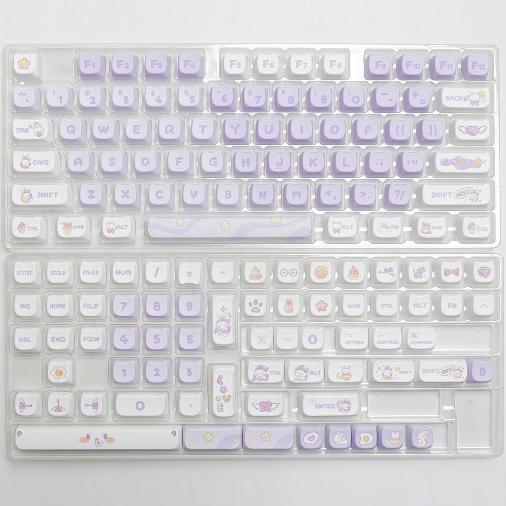 PBT Dye Sublimation Dreamy Purple Rabbit Keycap Cat Shape MAO Height Purple Cute Creative Mechanical Keyboard Cap Adaptable To 61/63/64/67/68/71/75/78/82/84/87/96/98/100/104/108