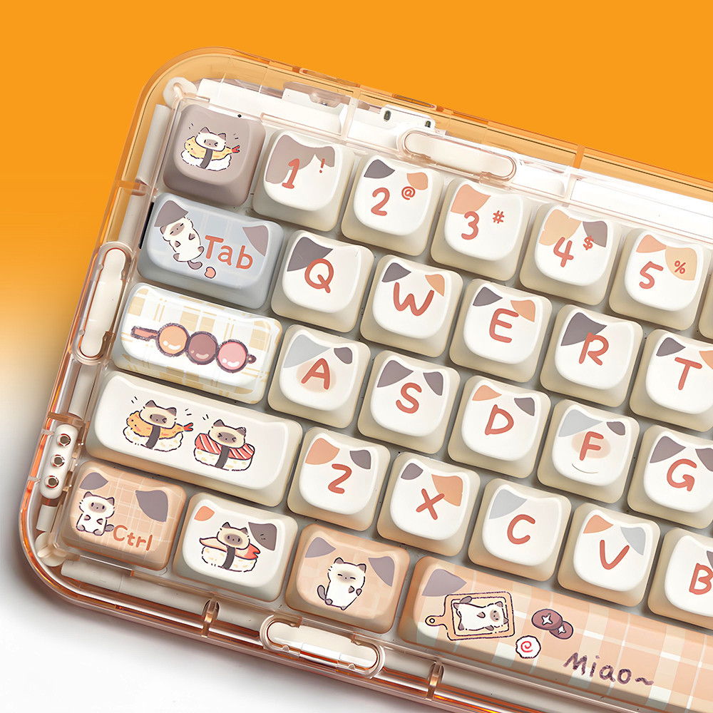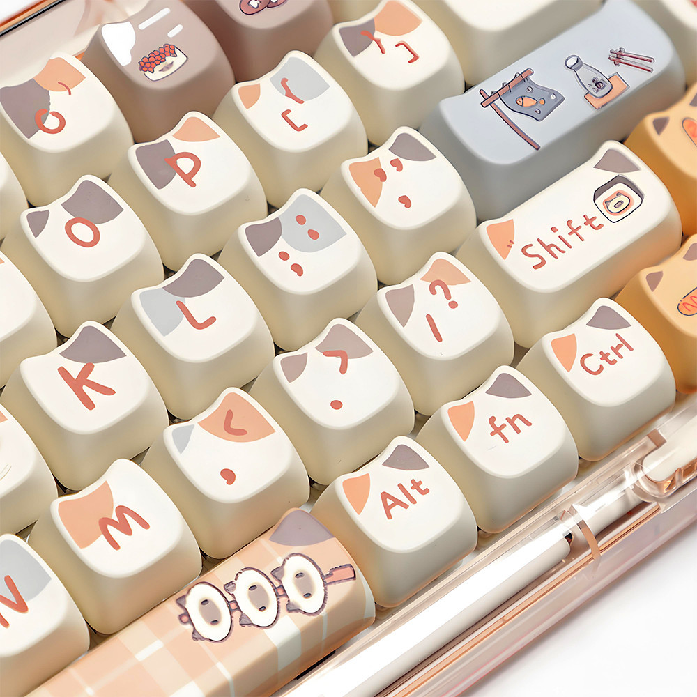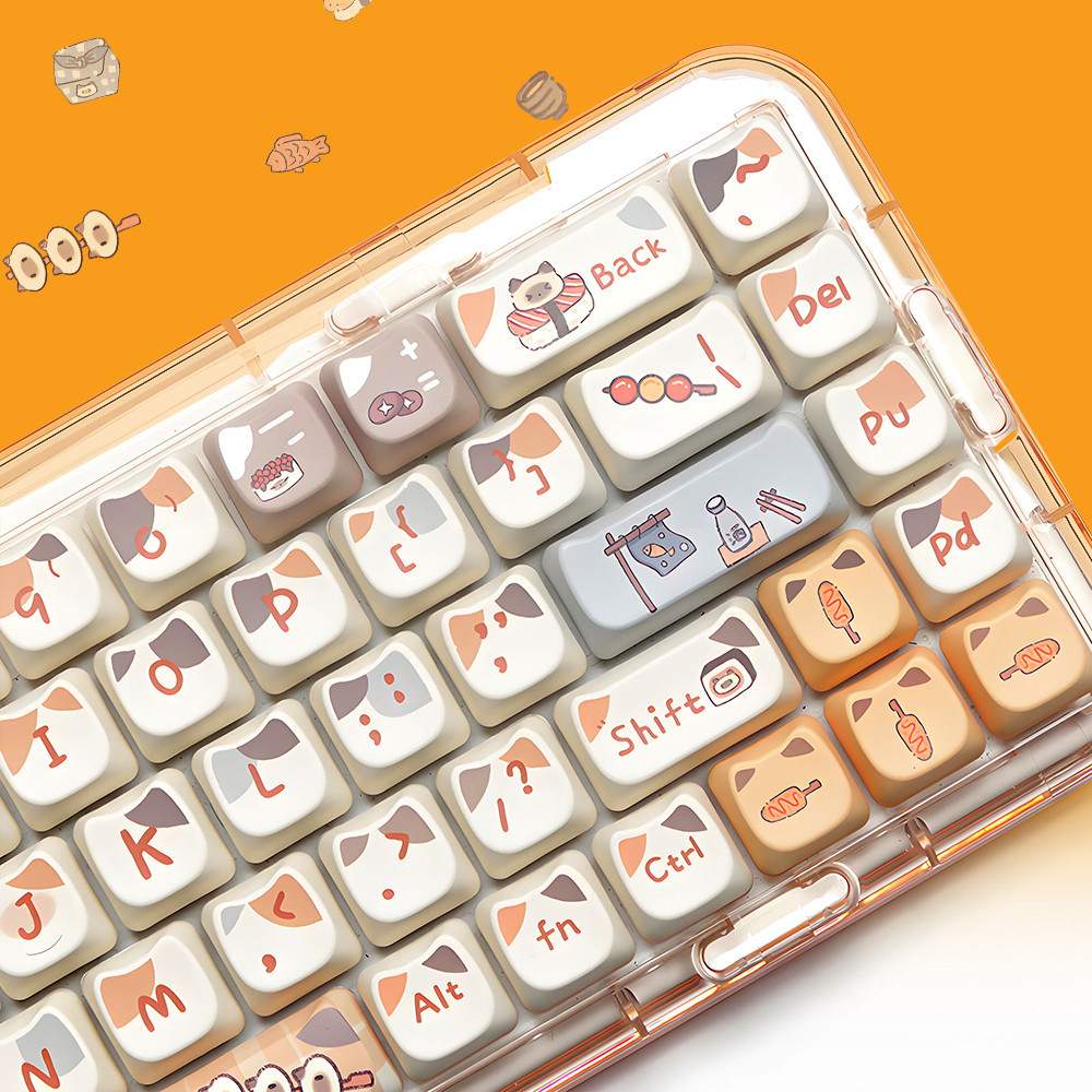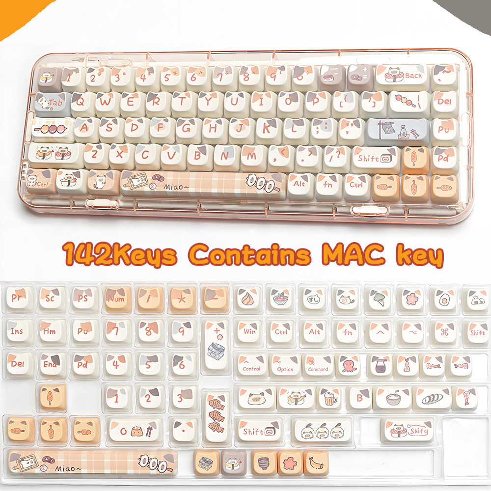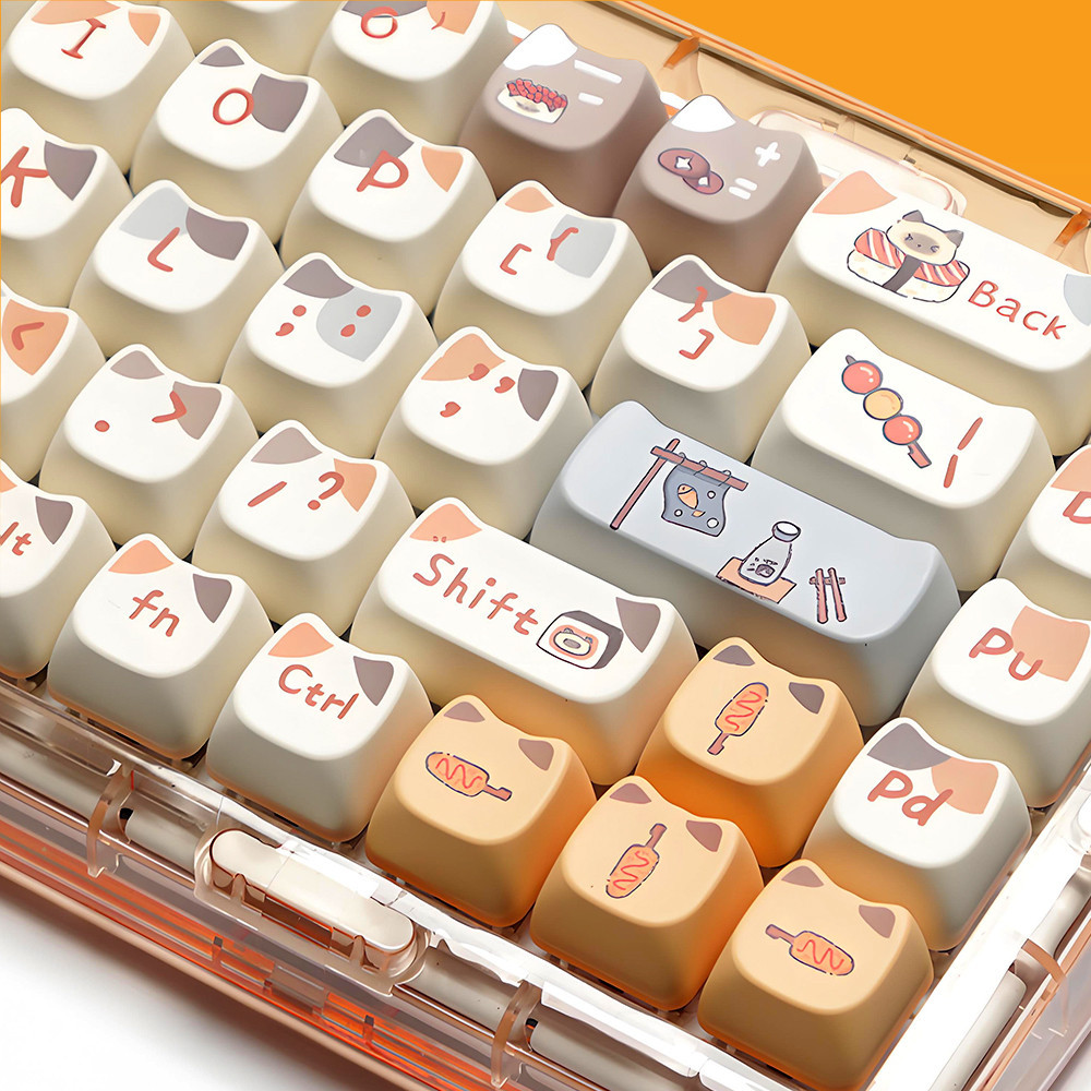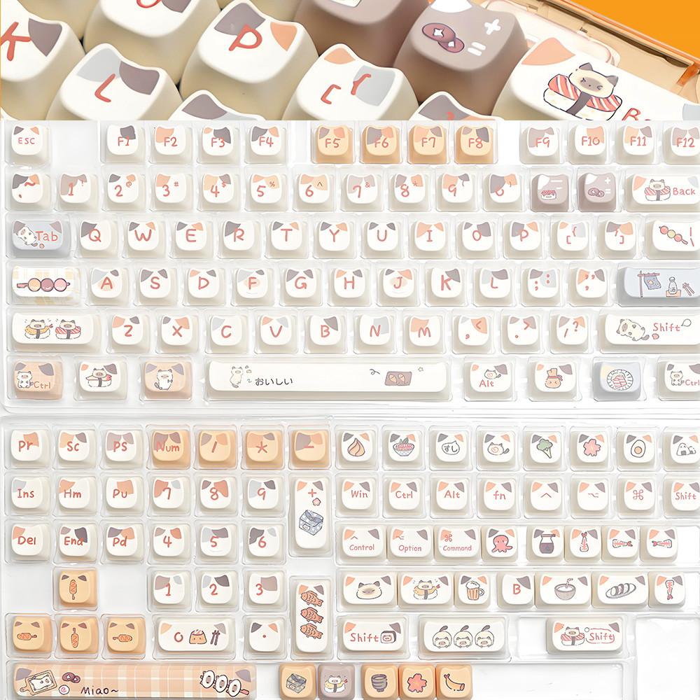 PBT Keycaps Cuisine Sushi Cat 142Keys/Set Keycaps Dye-Sublimation MAO Profile Custom Keycaps for Gateron Cherry MX Switches 60% 65% 70% 75% 100% Mechanical Gaming Keyboard Keycap