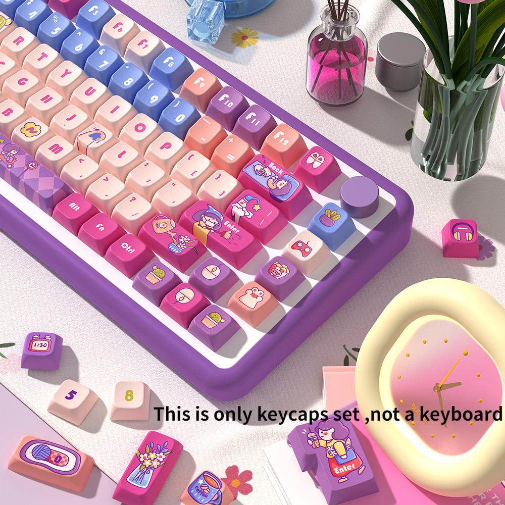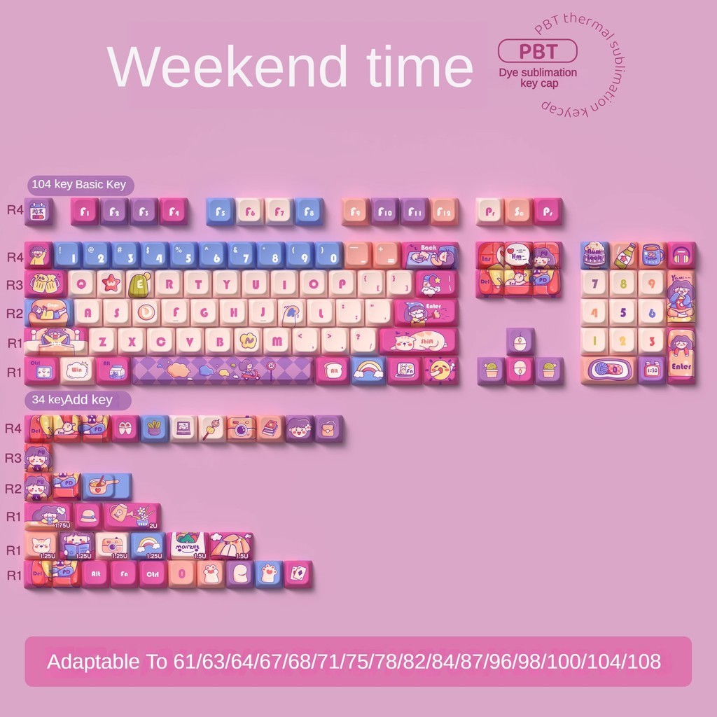 PBT Weekend Time Colorful Cute Graffiti Theme Keycaps MDA Highly Personalized 5-Sided Dye Sublimation Keyboard Caps Large Complete Set Adaptable To 61/63/64/67/68/71/75/78/82/84/87