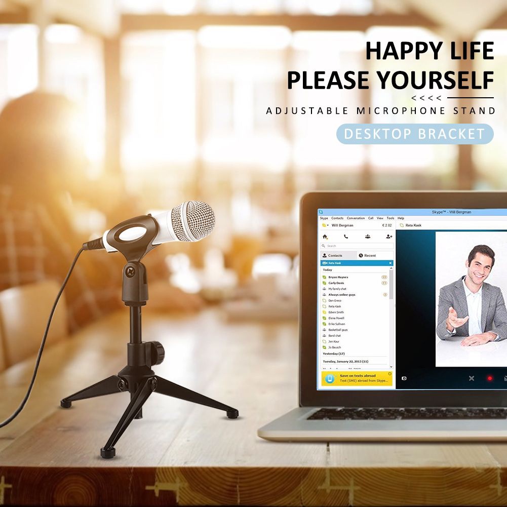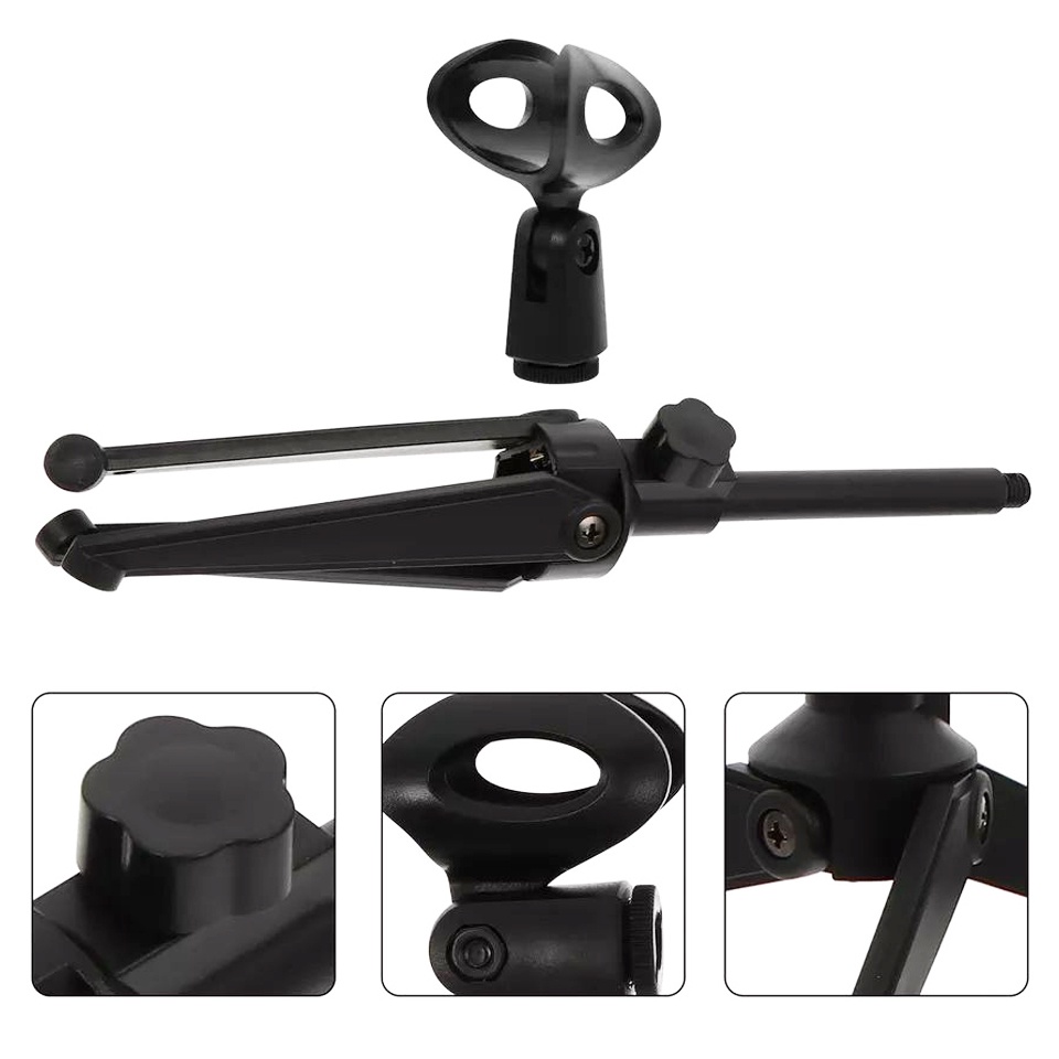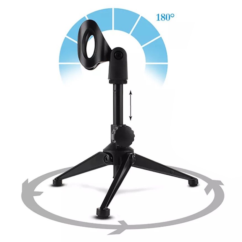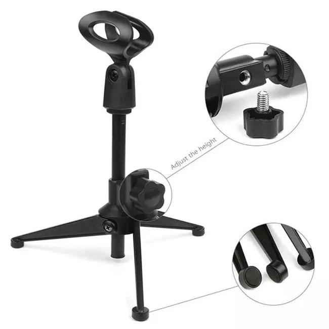 PC-03 Adjustable Desk Microphone Stand Tripod Mic Holder Desktop (Black)