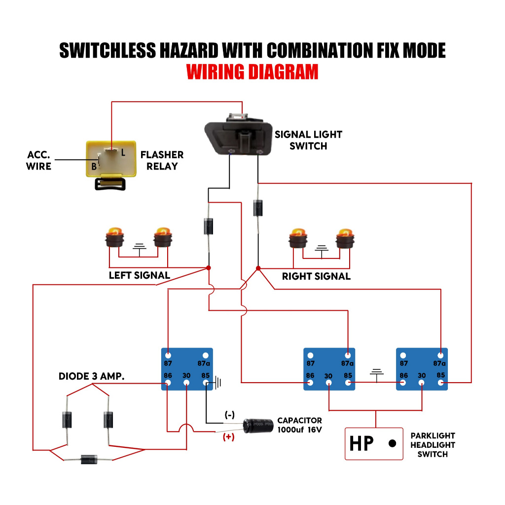 PC FIRST SWITCHLESS HAZARD with COMBINATION FIX MODE, BEST FOR MOTORCYCLE HAZARD LIGHTS