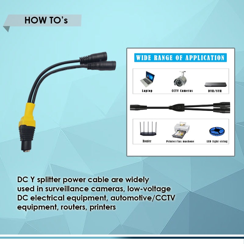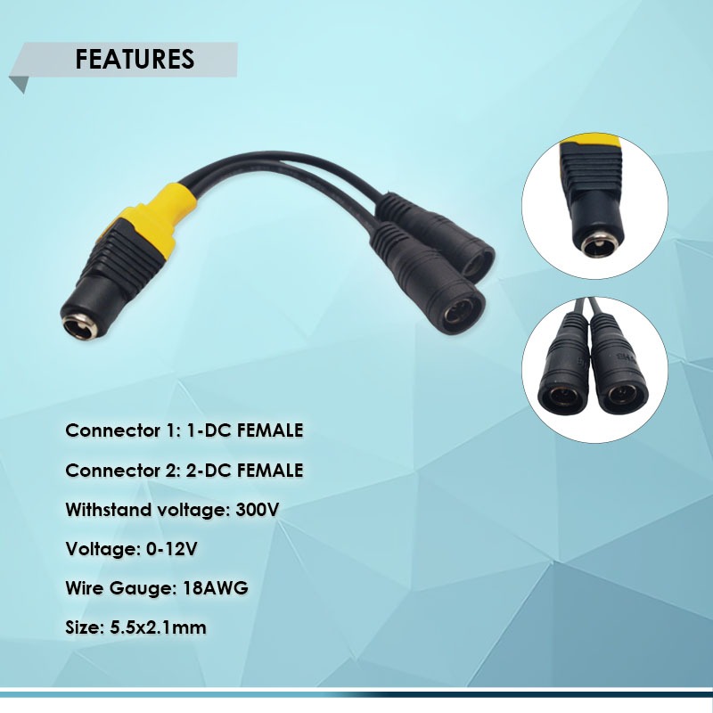 PC PO DC FEMALE to 2-DC FEMALE Y SPLITTER 5.5x2.1mm, BEST FOR CCTV, ROUTER, DVR, and LED