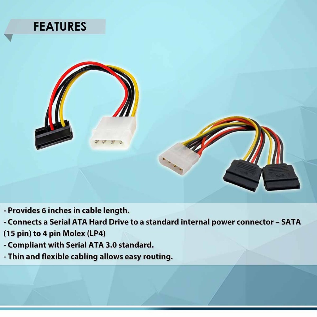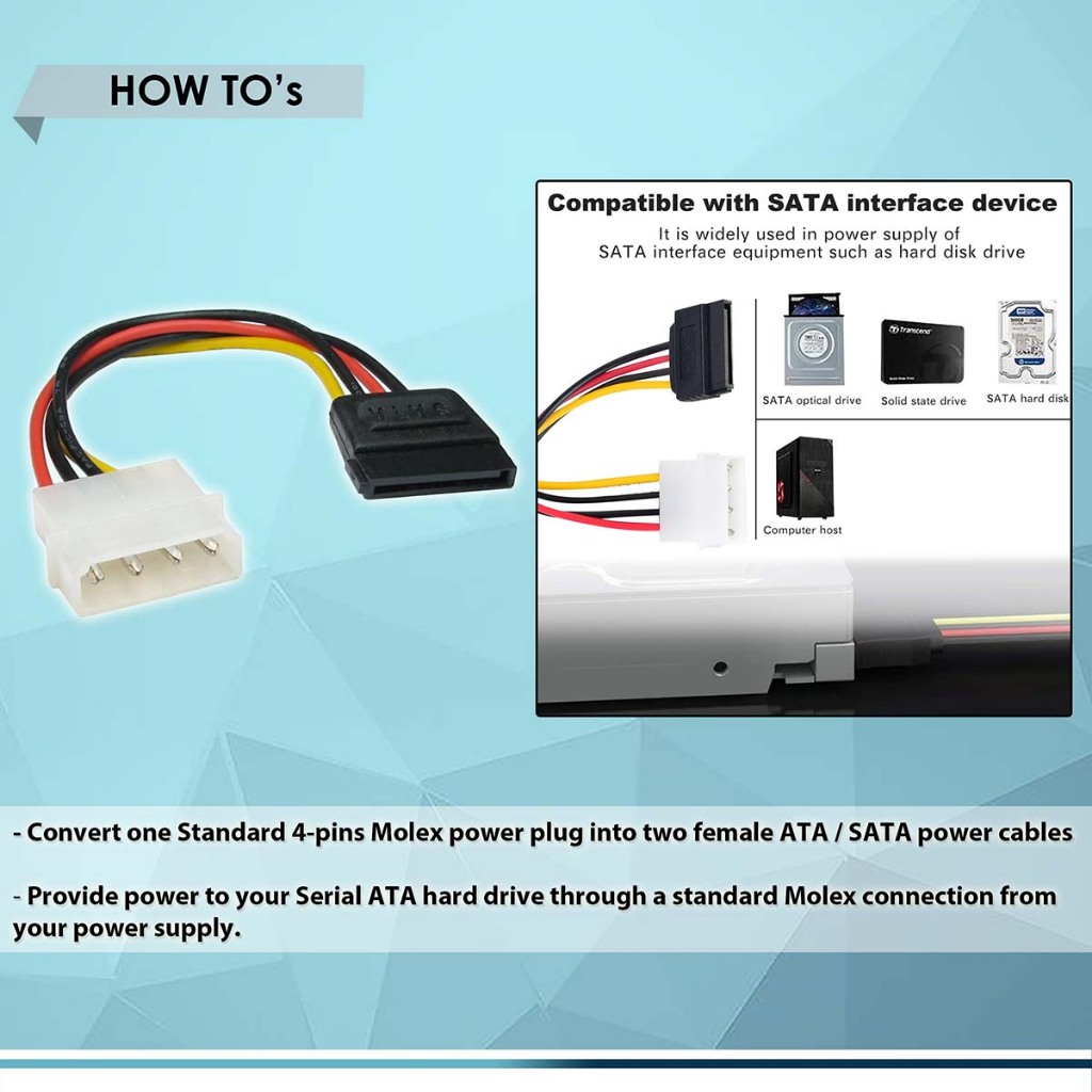 PC PO MOLEX to SATA CONNECTOR, For Hard Drive Power Supply Cable, 15 Pin Female to Molex IDE 4 Pin